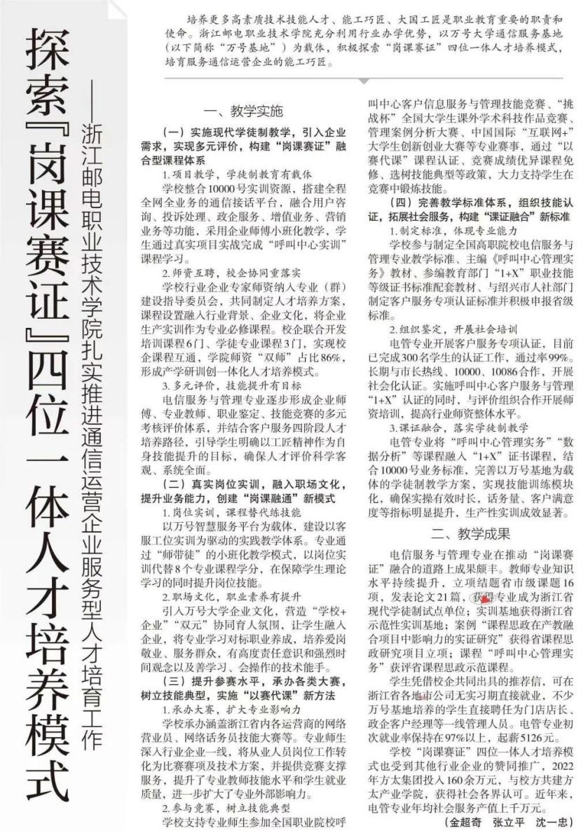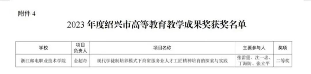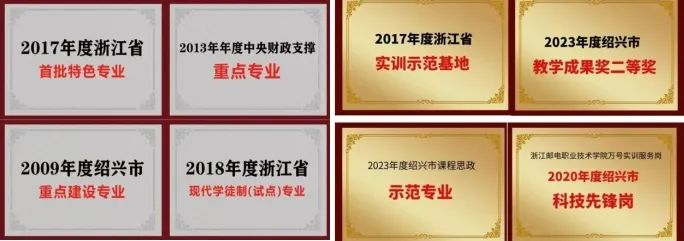 专业荣获绍兴市教学成果奖二等奖、绍兴市课程思政示范专业;“岗课赛证教学模式”荣获中国教育科学研究院优秀案例展评二等奖并经《中国教育报》等权威媒体报道;教师获得市课程思政案例大赛一等奖。