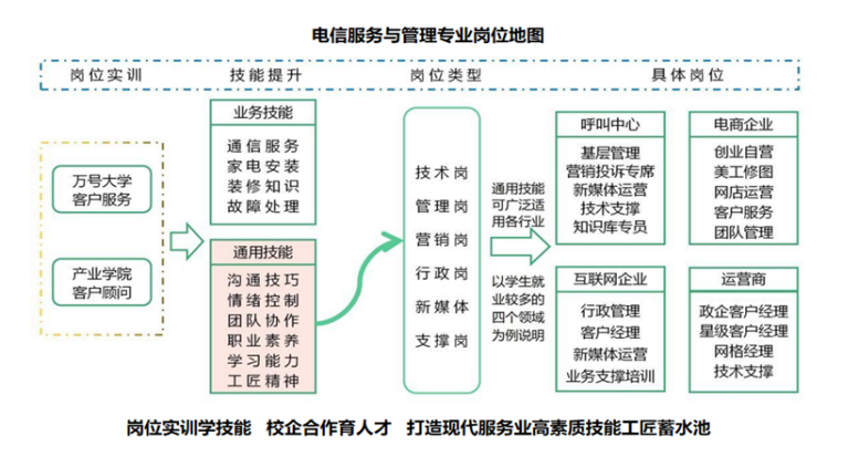 初始岗位群:信息通信服务企业前端经营与客户服务类高级应用型职员、现代服务业呼叫中心坐席、业务支撑和基层管理工作。