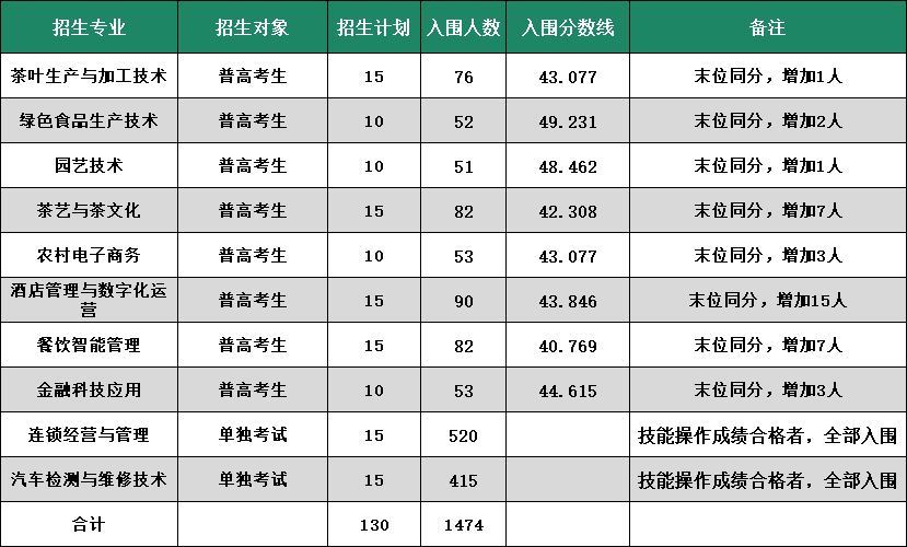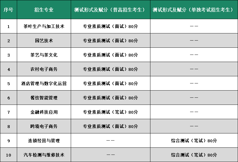 3.身体条件符合《普通高等学校招生体检工作指导意见》要求,其中茶叶生产与加工技术、茶艺与茶文化专业报考考生要求无色盲、色弱。
