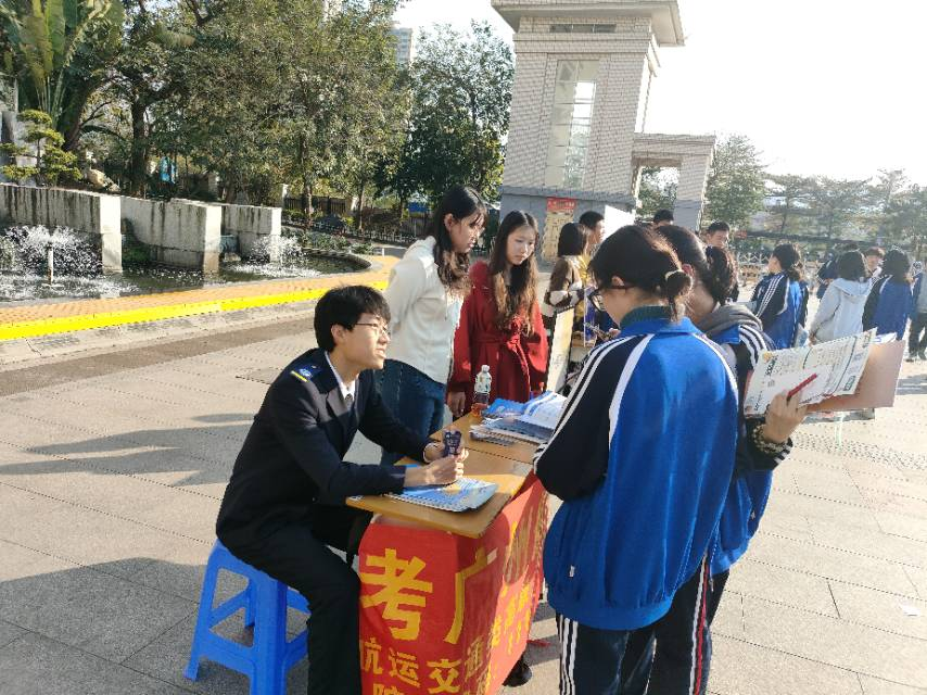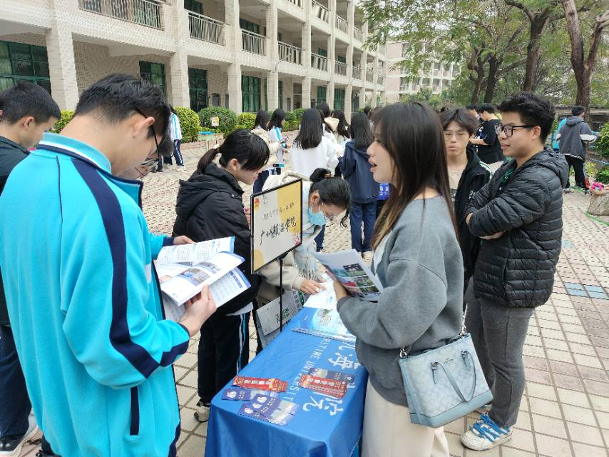 在禅城实验高中,寒宣队深入班级与礼堂,通过播放广航宣传片、学科特色讲解,生动呈现有关招生专业的实践教学等场景。队员们分享自己在广航的学习生活经历,包括丰富多彩的社团活动、各类学科竞赛以及实习实践机会,使学弟学妹们对大学生活有更直观的感受。活动吸引众多高中学生和家长前来参加,现场互动活跃,参与人数累计达300人。