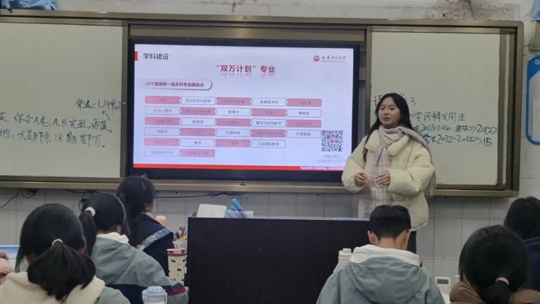 宣讲中,团队成员一同分享在天津师范大学的生活点滴,还有备战高考的实用经验。有人着重讲述大学丰富的社团活动,点燃他们对大学生活的向往;有人细致拆解学科复习技巧,助力他们解决眼前的学习难题。学弟学妹们听得认真,踊跃提问,眼神里满是对未来的憧憬,让我们看到了曾经的自己。