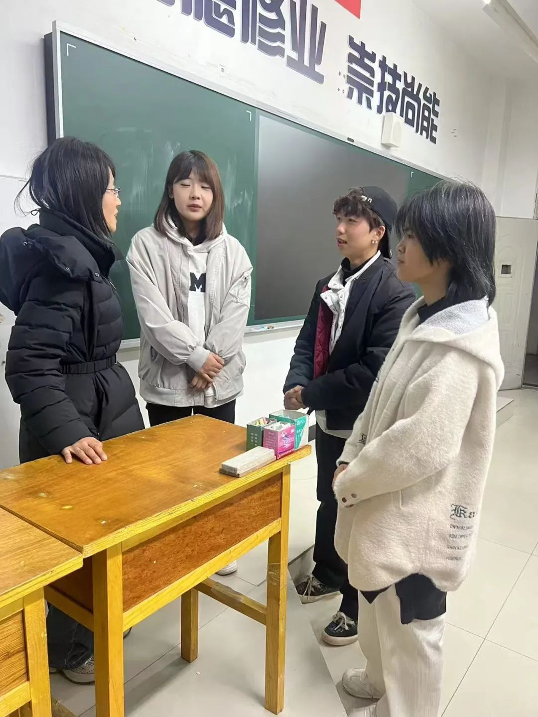 2月25日下午,工艺美术设计专业的师佳彤、田雅婕、许萌三位同学前往他们的母校庆阳市西峰职业中专,探望以前的老师,期间为25届工艺美术专业的学弟学妹开展入大专前置教育。他们详细分享了自己进入非遗学院后所学习的课程、非遗学院的实训资源和校园文化,通过交流,为即将参加2025年转段考试的工美专业学生答疑解惑。