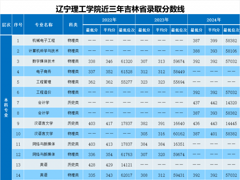 报考指南·吉林丨2022-2024年辽宁理工学院录取分数线及位次