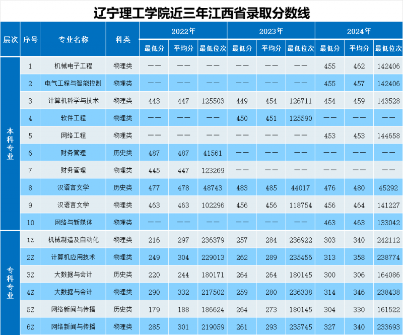 报考指南·江西丨2022-2024年辽宁理工学院录取分数线及位次