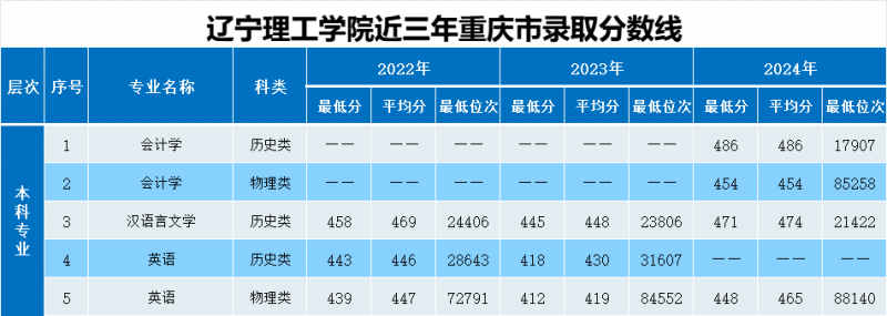 报考指南·重庆丨2022-2024年辽宁理工学院录取分数线及位次