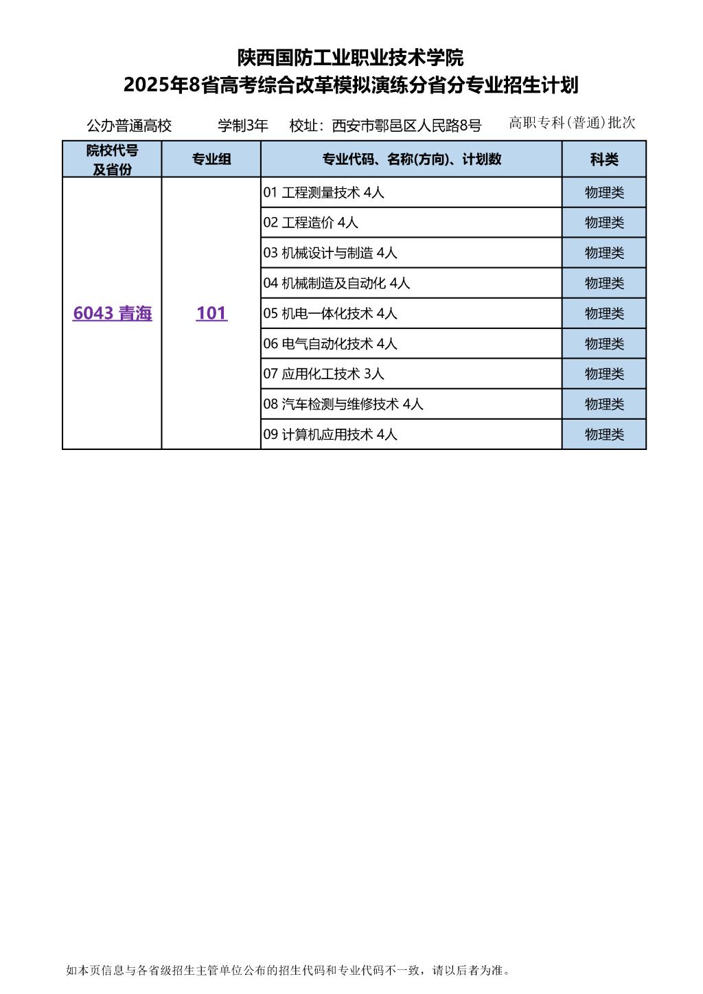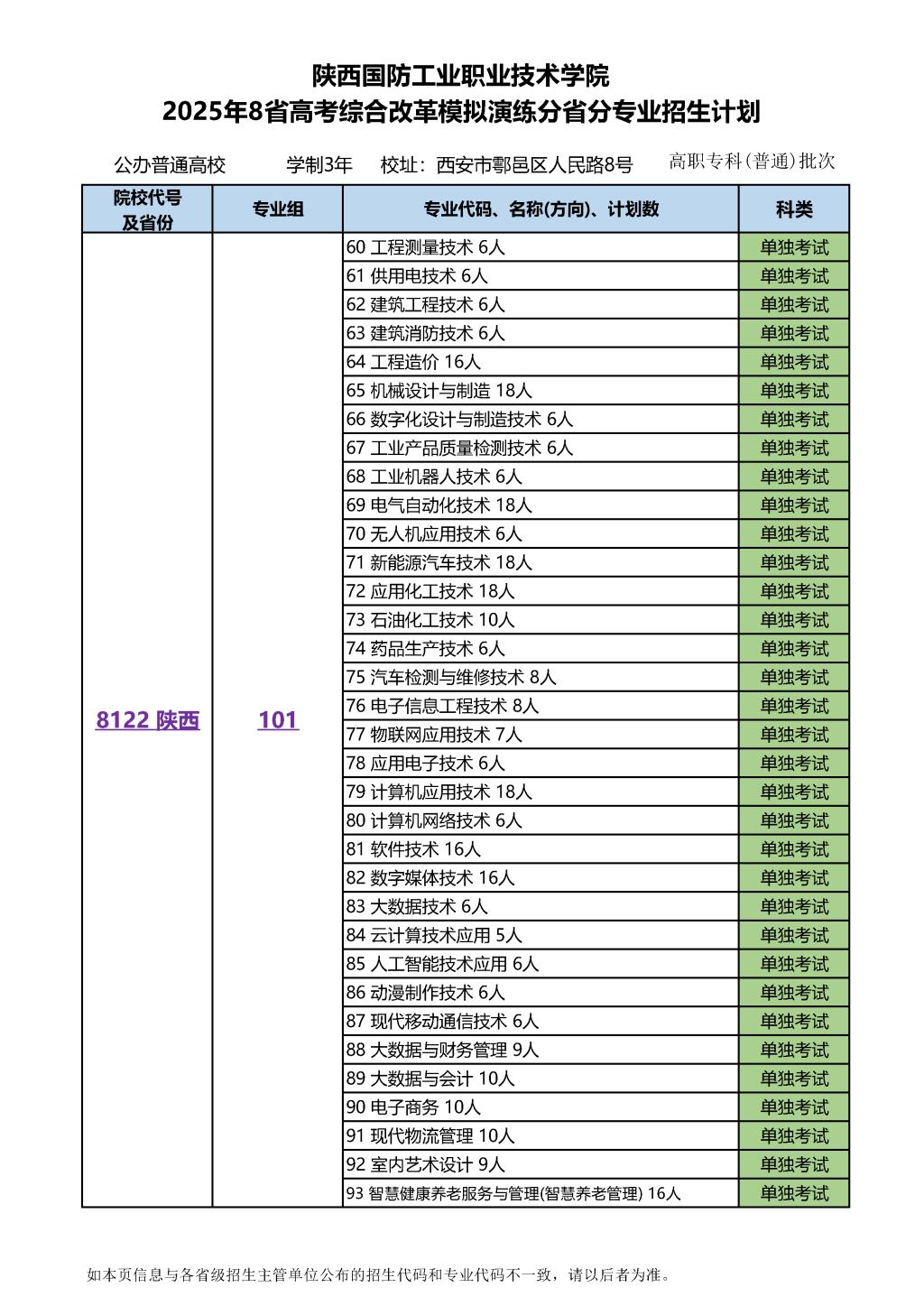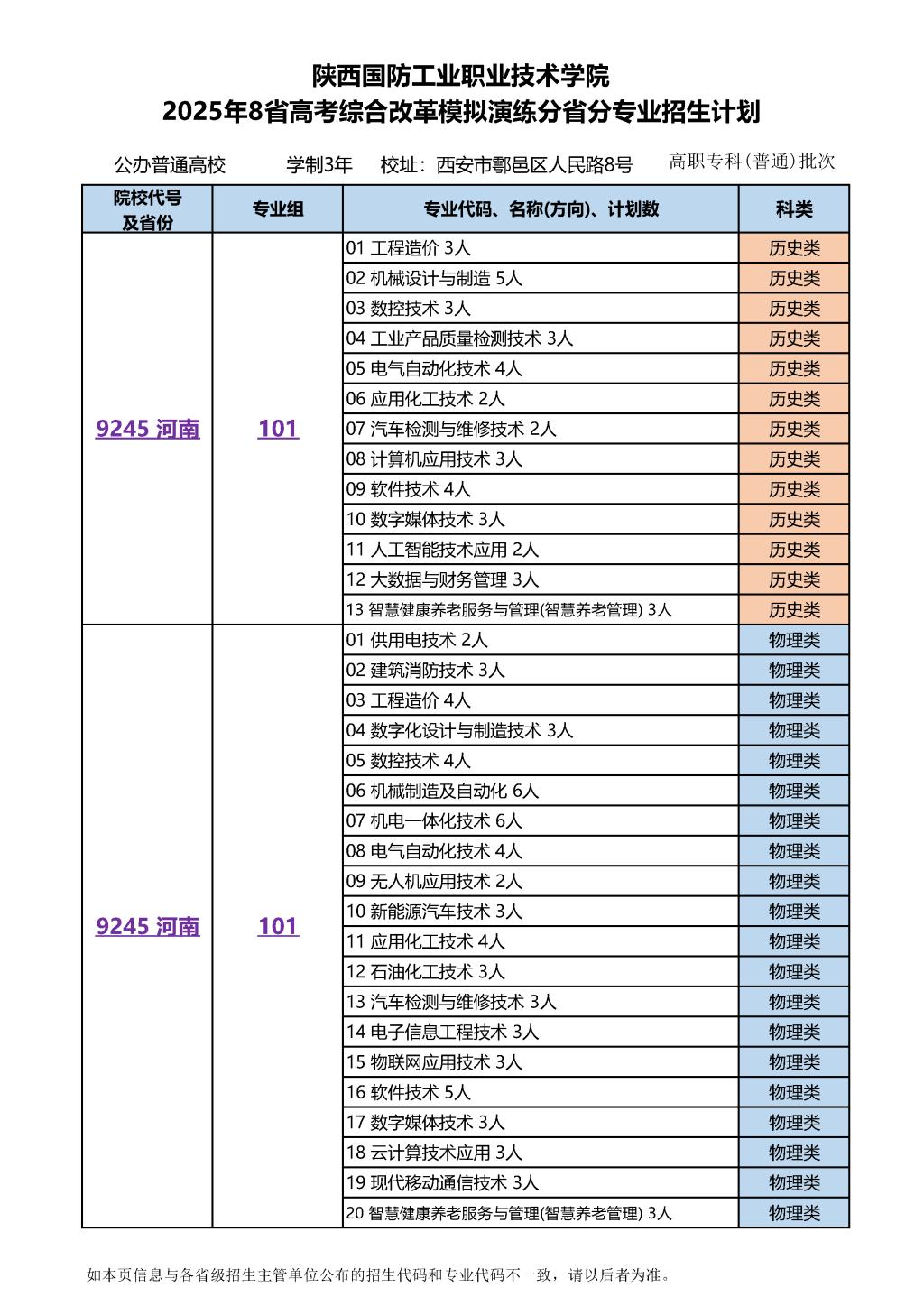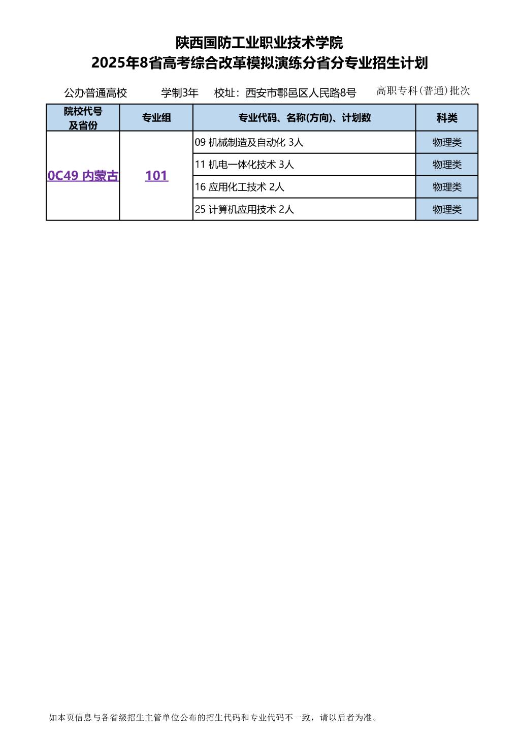 2025年8省高考综合改革模拟演练分省分专业招生计划
