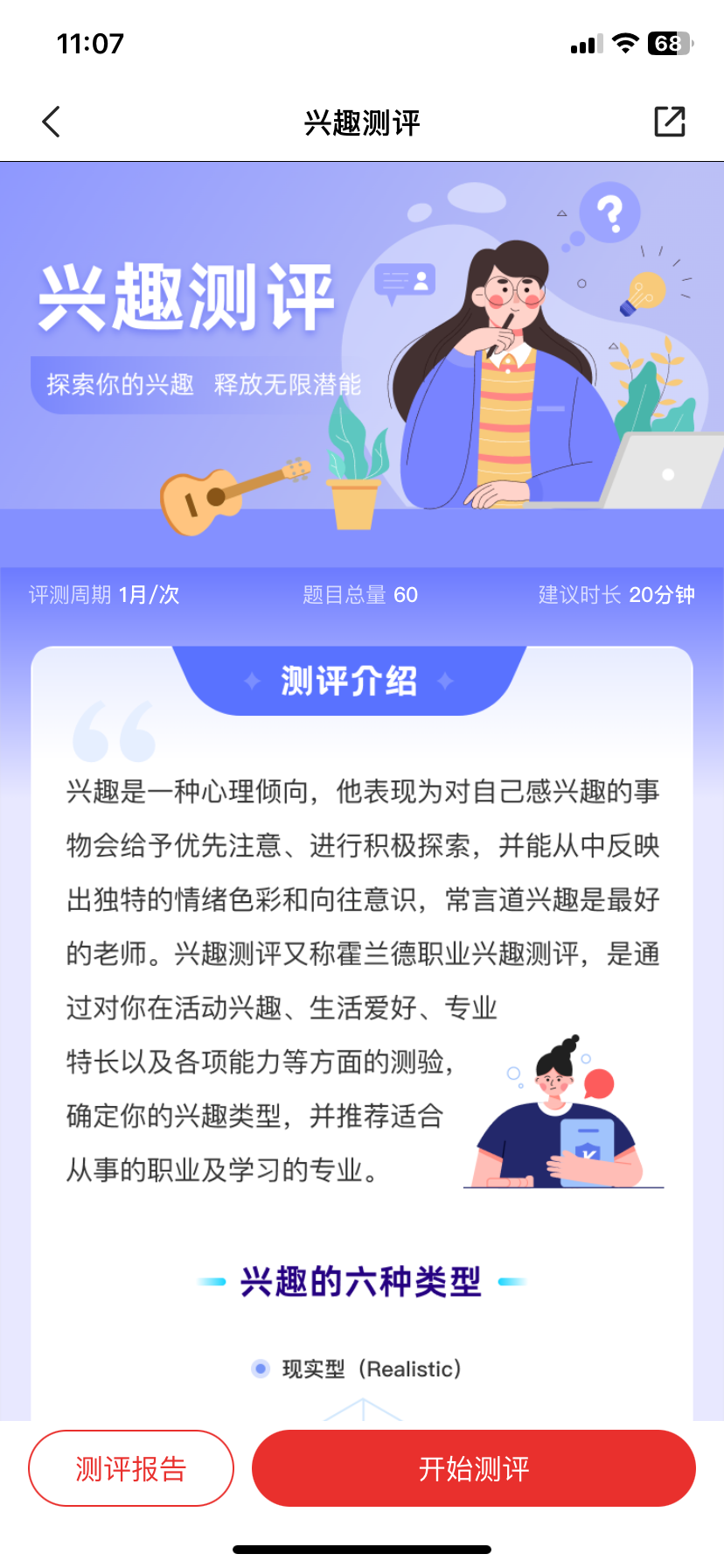 借助优志愿APP 测试等工具,深入了解自己的兴趣爱好、性格特点、优势劣势等,明确自己在艺术领域的喜好和特长。