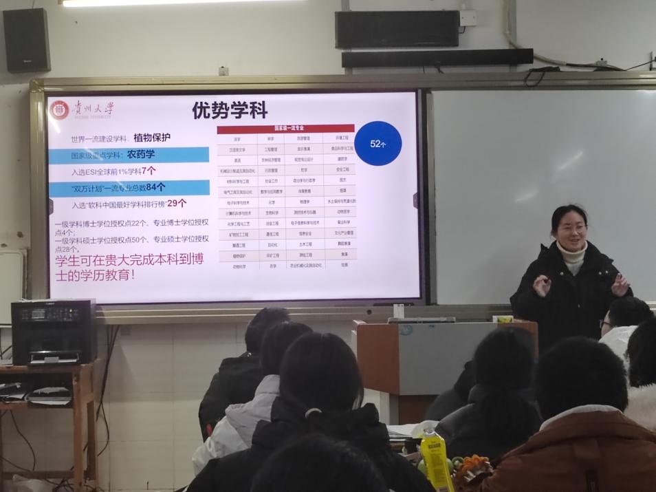 活动开展过程中,贵大学子们重点围绕贵州大学的优势学科布局、特色专业设置以及雄厚的师资队伍力量等内容,介绍了学校在人才培养、科学研究、社会服务等方面的显著成就。同时,还分享了在校学习及生活情况,并就中学生关心的高考备考、志愿填报、专业选择等方面进行了讲解。