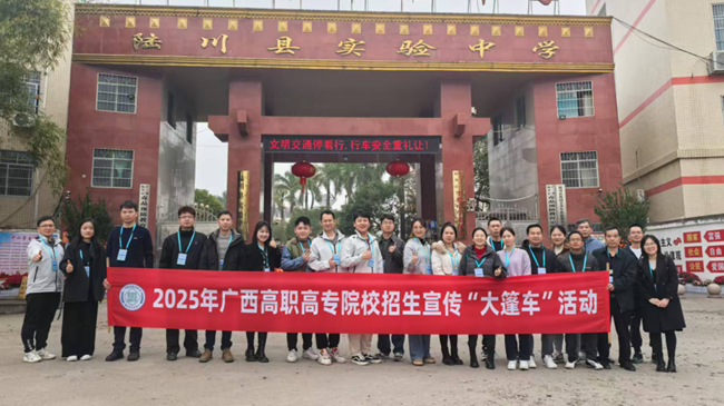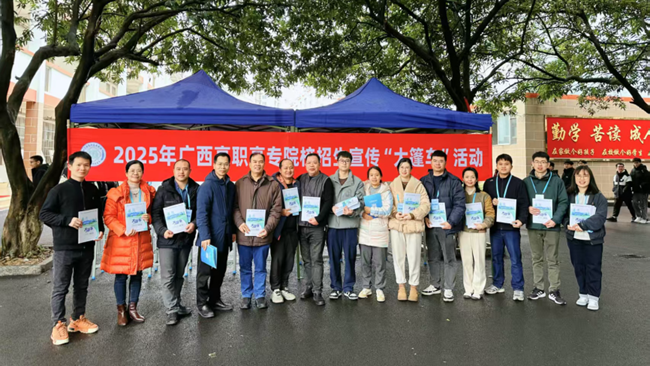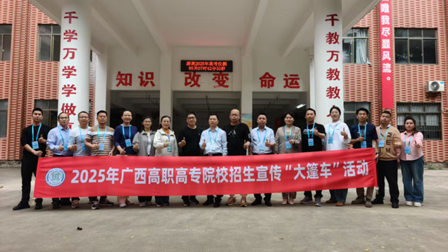 为做好2025年广西高职分类考试招生政策的宣传工作,深化高职高专院校与普通高等中学的交流合作,推动职业教育高质量发展,2月25日至3月7日,广西高职高专院校2025年招生宣传“大篷车”活动正式开展。我校积极响应自治区招生考试院号召,精心选派黎敬铁、周恒、詹新承、龚云钦共4名招生宣传骨干教师参与此次活动。