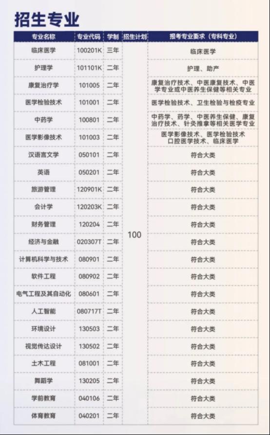 专升本学生(含退役大学生士兵)为我校普通全日制学生,除临床医学为3年制外,其余均为2年制。不得采取非全日制学习形式就读,入学后不得转专业和转学。