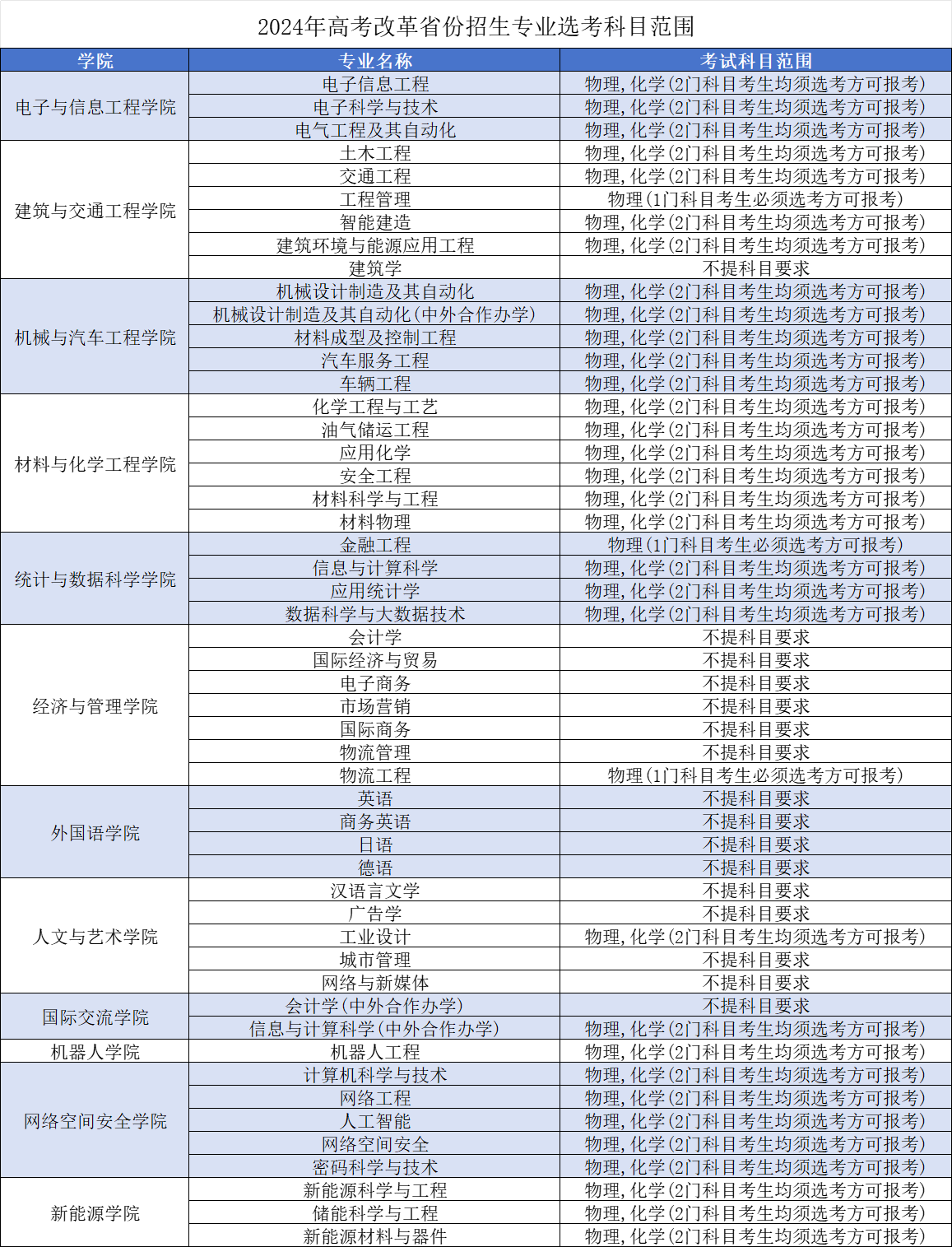 2024年在高考改革省份招生专业选考科目范围(含新增专业)