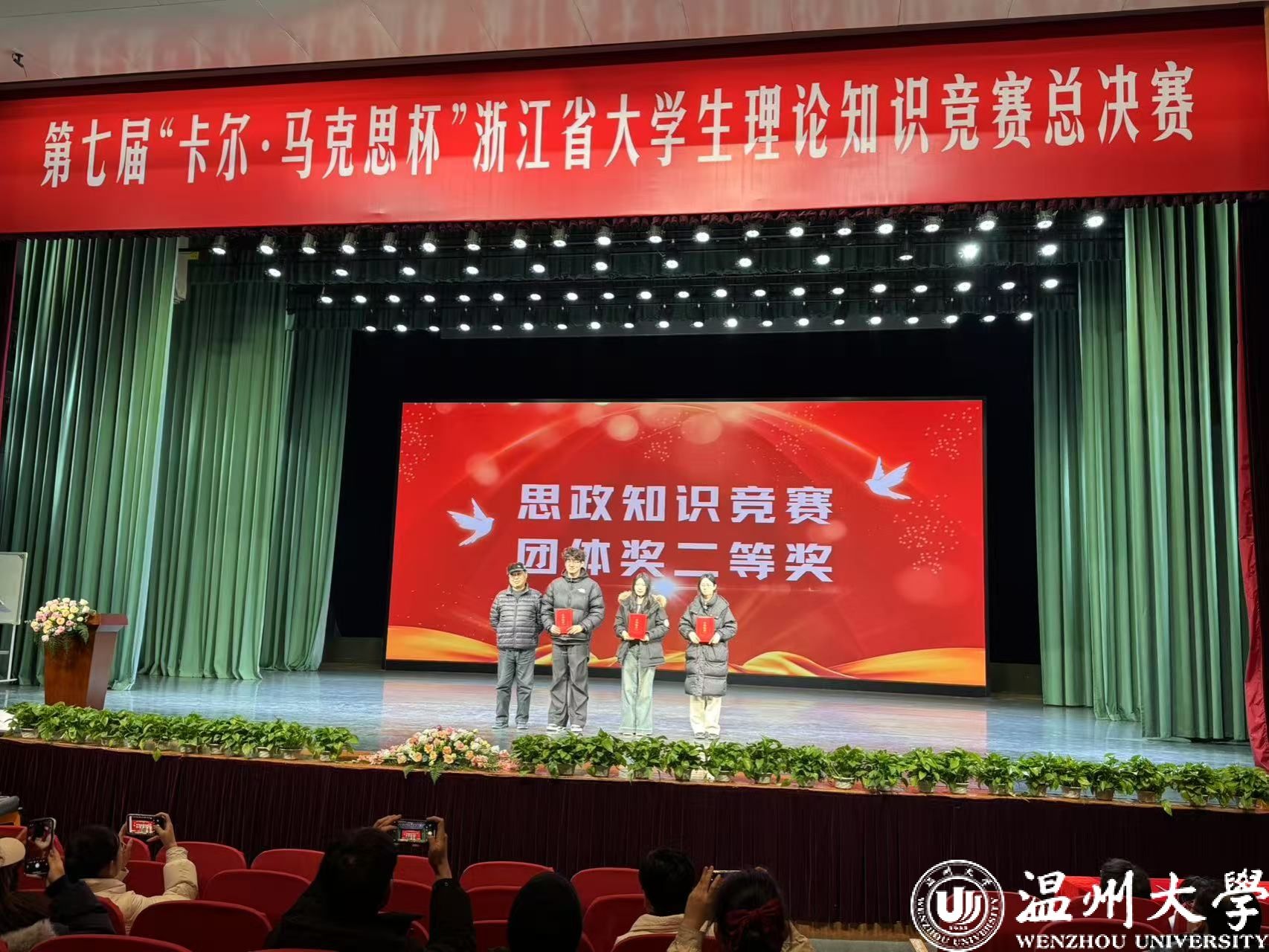 日前,第七届“卡尔•马克思杯”浙江省大学生理论知识竞赛总决赛成绩公布,温州大学硕士研究生代表队精诚合作、共同努力,最终获2项个人一等奖、1项思政课学习标兵,7名学生获得二等奖、三等奖,7名教师获优秀指导教师和优秀组织工作奖,温州大学代表队获团体二等奖(全省第4名)。