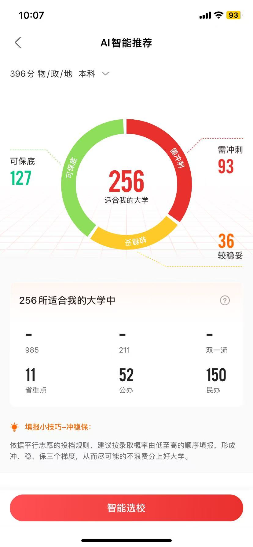 建议大家使用优志愿【智能填报功能】,系统会根据您输入的成绩为您推荐适合您的院校及录取的概率。