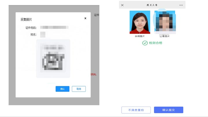 点击【采集照片】按钮,通过手机拍摄采集提交本人照片进行上传确认,如下图所示: