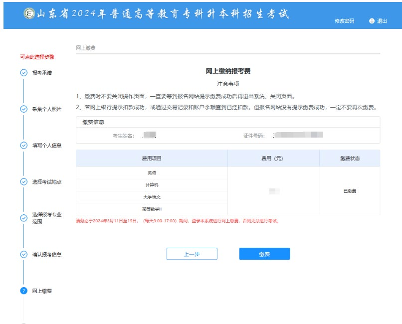 缴费时不要关闭操作页面,一直要等到报名网站提示缴费成功后再关闭窗口。