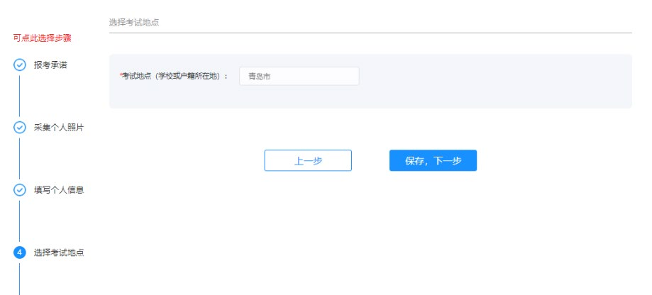 考生进入选择考试地点界面,选择考试地点,如下图所示:
