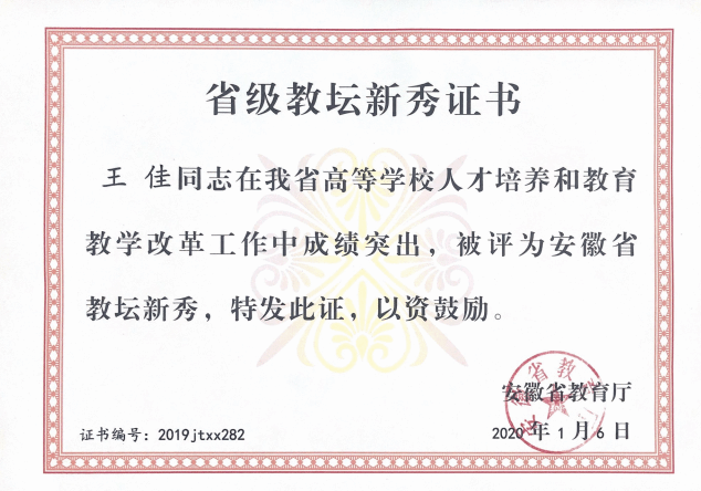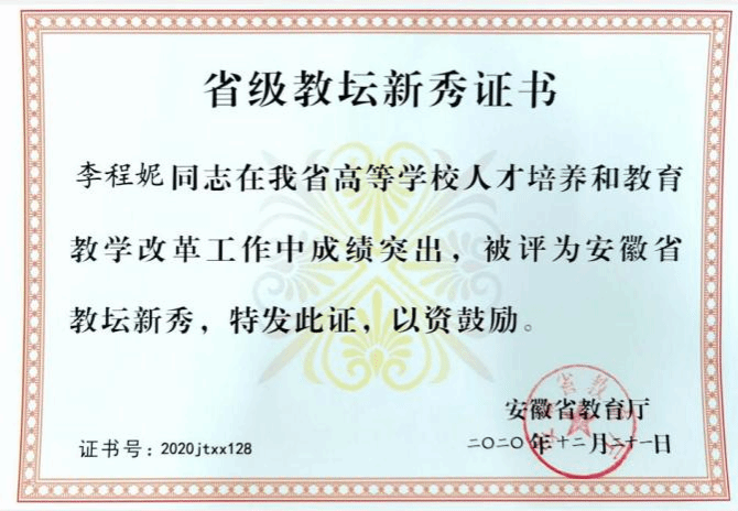 团队先后多人多次获得省级教坛新秀称号、厅级考核优秀、院级师德高尚奖、院级优秀党员等荣誉称号,获得获得省级教师教学能力竞赛三等奖,获得安徽省第六届校企合作典型案例征集和主题征文活动二等奖,获得学院“课程思政”优秀案例评选一等奖、三等奖,获得院级说课比赛一等奖,获得院级说专业比赛三等奖等诸多奖项。