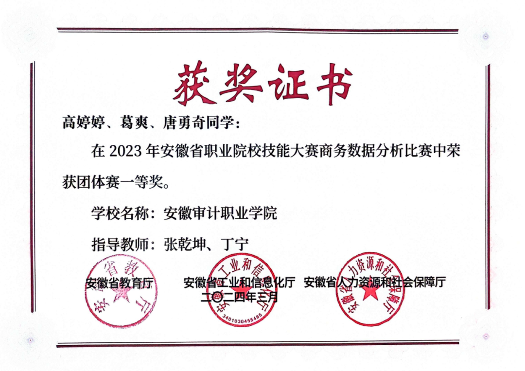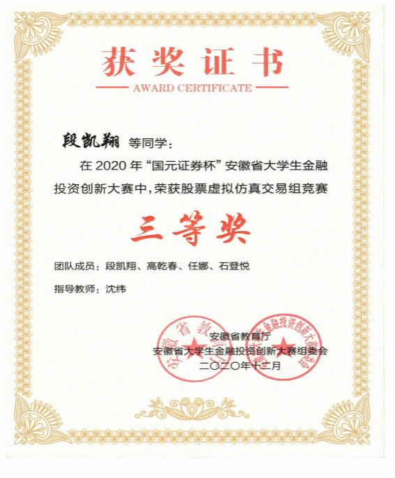 近年来,财富管理业学生参加安徽省大学生职业技能大赛共获一等奖1项,二等奖6项,三等奖3项;参加其他各类B级赛项获奖百余项。