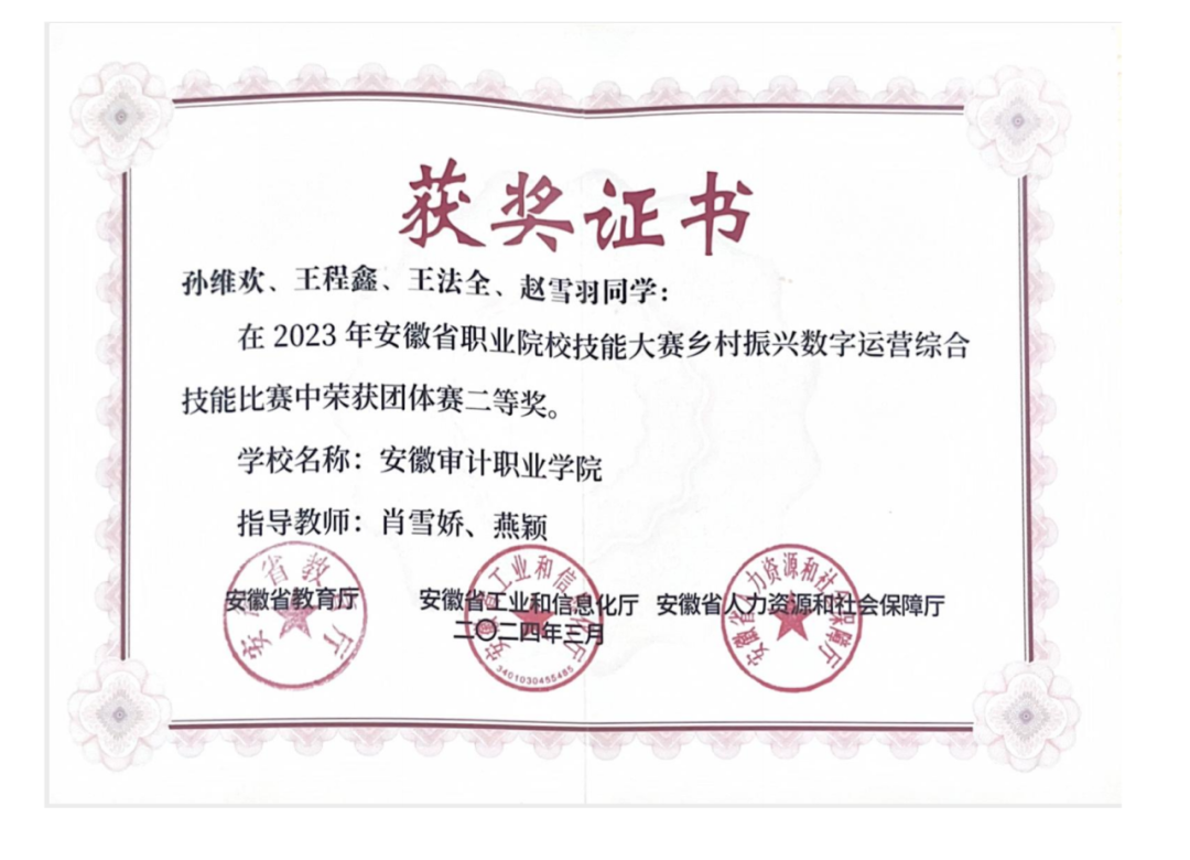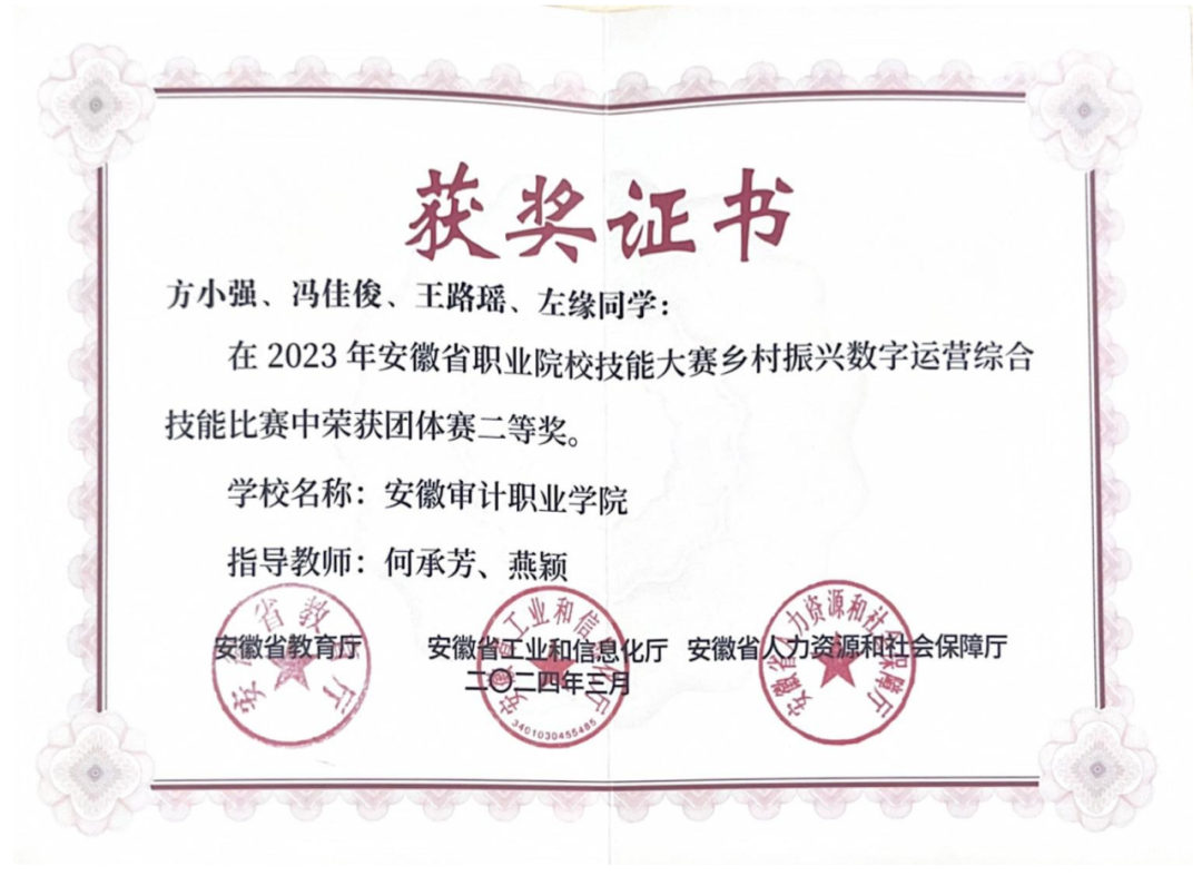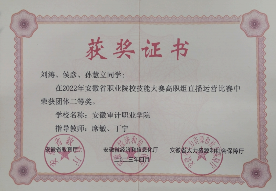 2022年学生参与安徽省职业院校技能大赛市场营销赛项,获得省赛二等奖,乡村振兴赛项获得省赛三等奖,直播运营赛项获得省赛二等奖,安徽省大学生广告艺术设计大赛一等奖,安徽省微电影大赛三等奖。