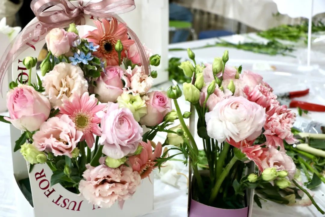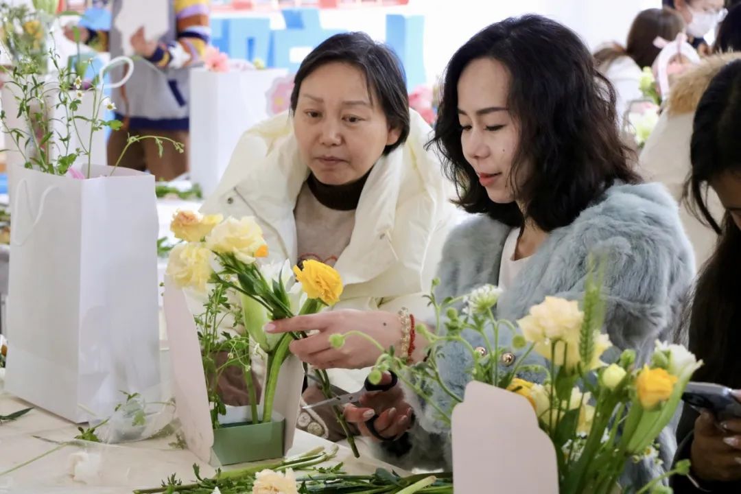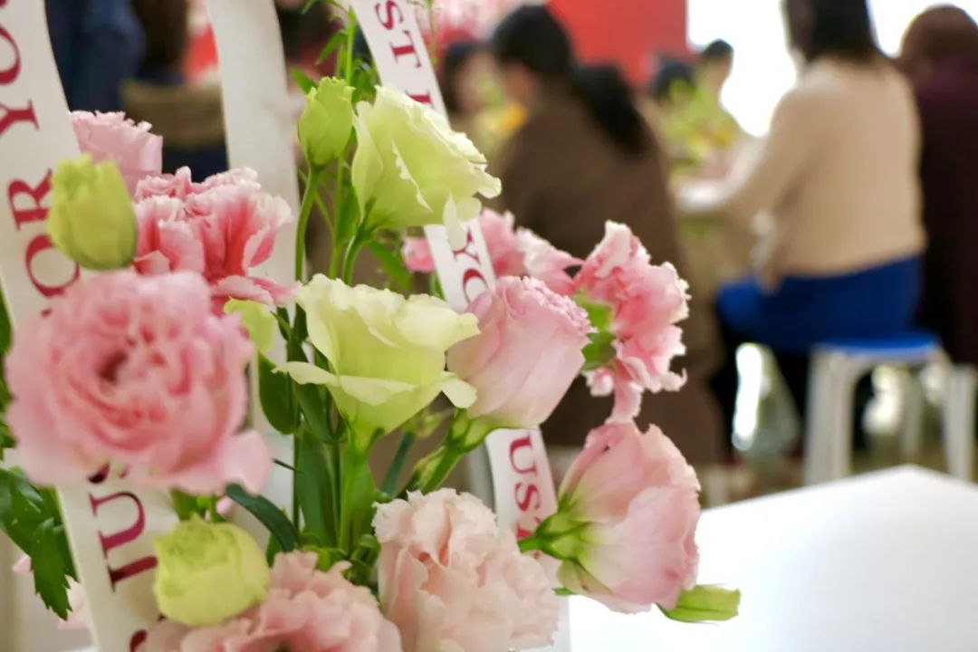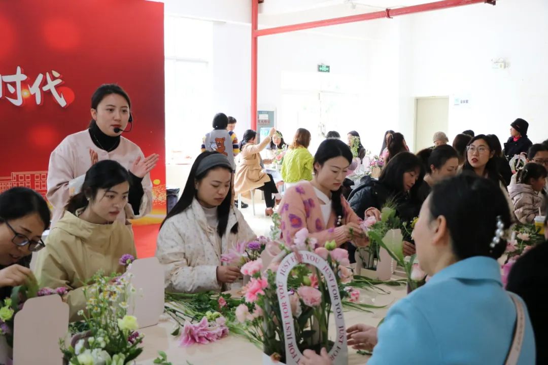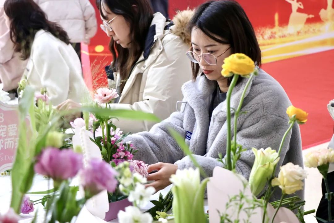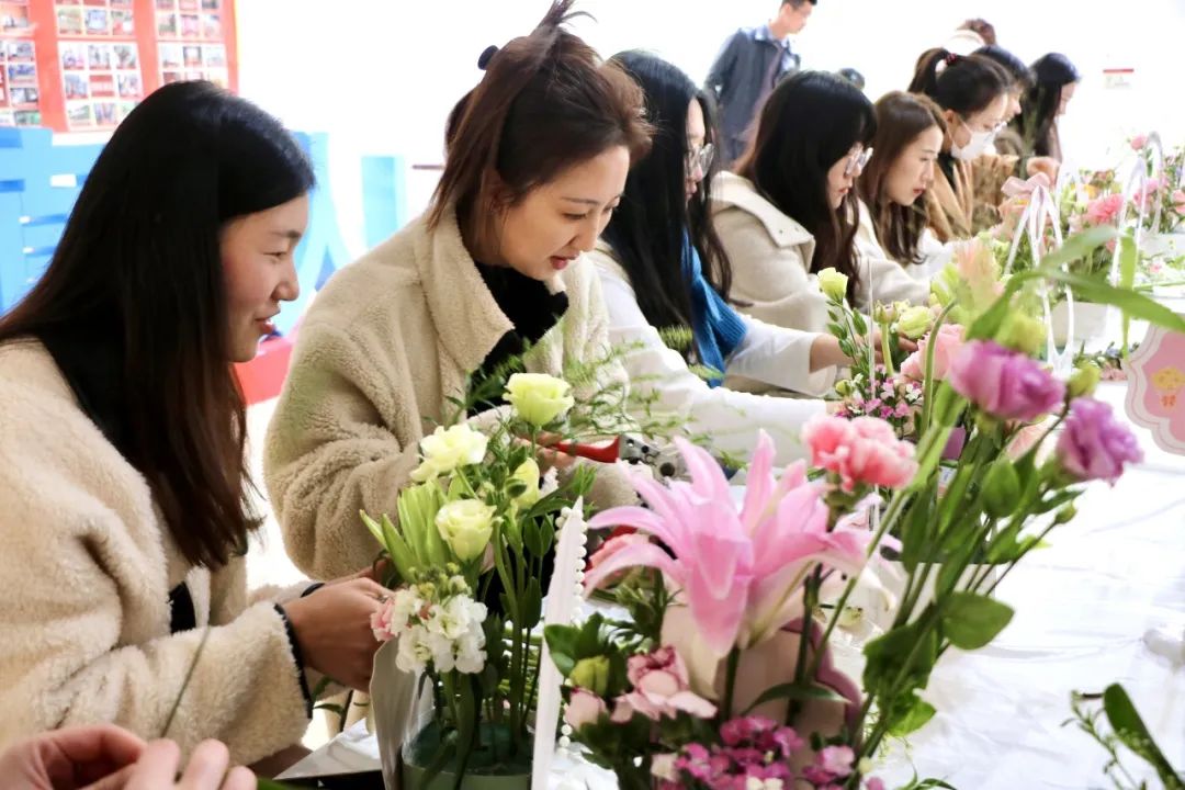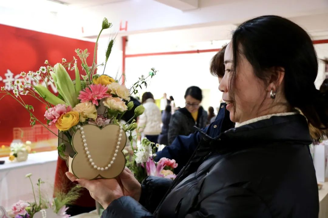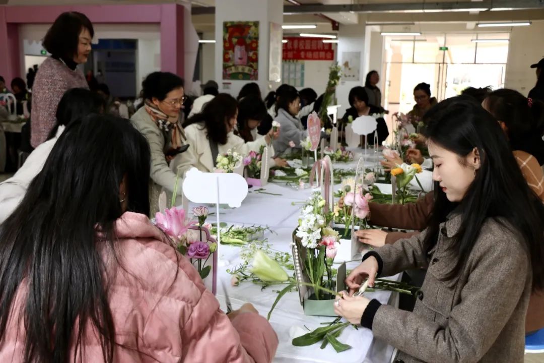 在花艺师的指导下,女教职工们亲自动手体验插花的乐趣,充分发挥想象力和创造力,创作了属于自己的花艺作品。活动现场花香四溢,欢声笑语不断,大家在插花的过程中放松身心,享受创作的乐趣,互相欣赏、交流插花心得。