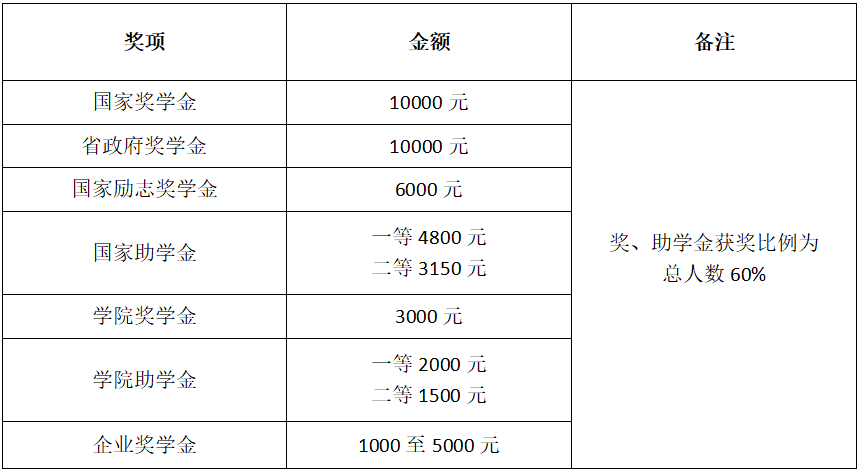 学院积极贯彻落实国家奖、助学金、助学贷款政策,建立国家奖学金、省政府奖学金、国家励志奖学金、国家助学金、学校奖学金、企业奖学金于一体的助学成才体系。退役士兵专项助学金3300元/年,助学贷款12000元/年。