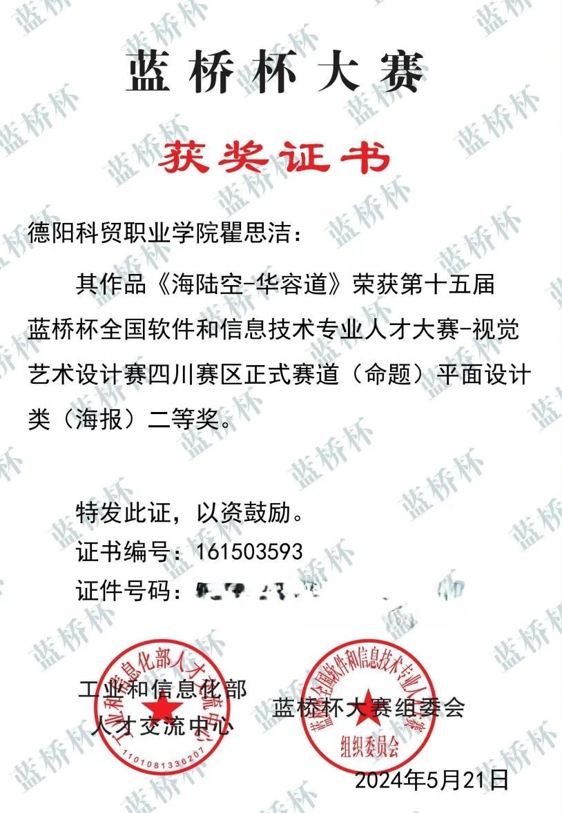 2023年全国艺术设计教师教学创新大赛(四川赛区)二等奖1项、三等奖1项。