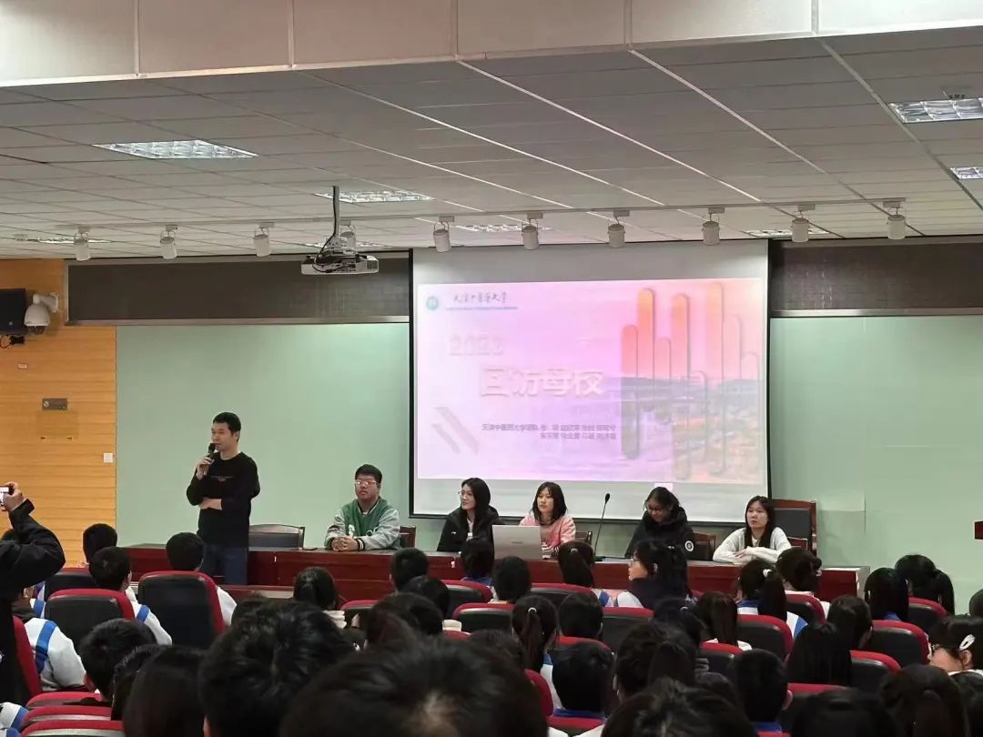 宣讲于2024年1月10日在潘庄中学开始,总宣讲时间控制在40分钟左右,第一部分,进行宣讲简介,播放天津中医药大学招生宣传片,以视频为开始引入本次宣讲,吸引同学们的注意力,使同学们对天津中医药大学产生浓厚兴趣;02