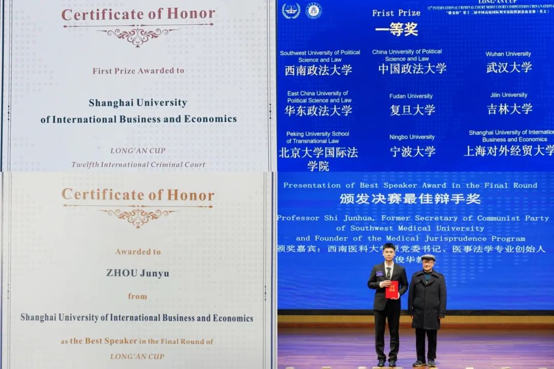 2025年3月8日至9日,第十二届中国高校国际刑事法院模拟法庭竞赛(英文)在四川泸州西南医科大学举行,上海对外经贸大学代表队从62所中国内地高校中突出重围,夺得本届赛事全国冠军和一等奖,辩手周峻玉同学荣膺决赛“最佳辩手”。我校代表队将于今年6月以中国赛区冠军身份代表中国高校出征荷兰海牙国际刑事法院现场举行的全球总决赛,与来自五大洲六十多个国家和地区的一百余所顶级院校同场竞技,展现中国法学教育的卓越成果。