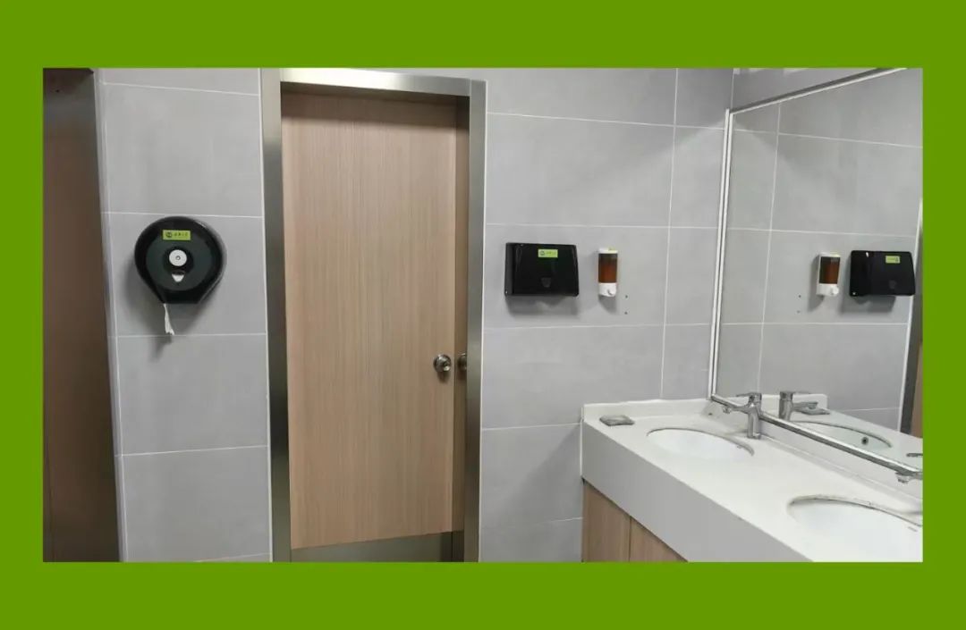 改造后的教学楼区卫生间干净明亮,新增了入厕卷纸和干手纸,课间休息时也能安心入厕啦。