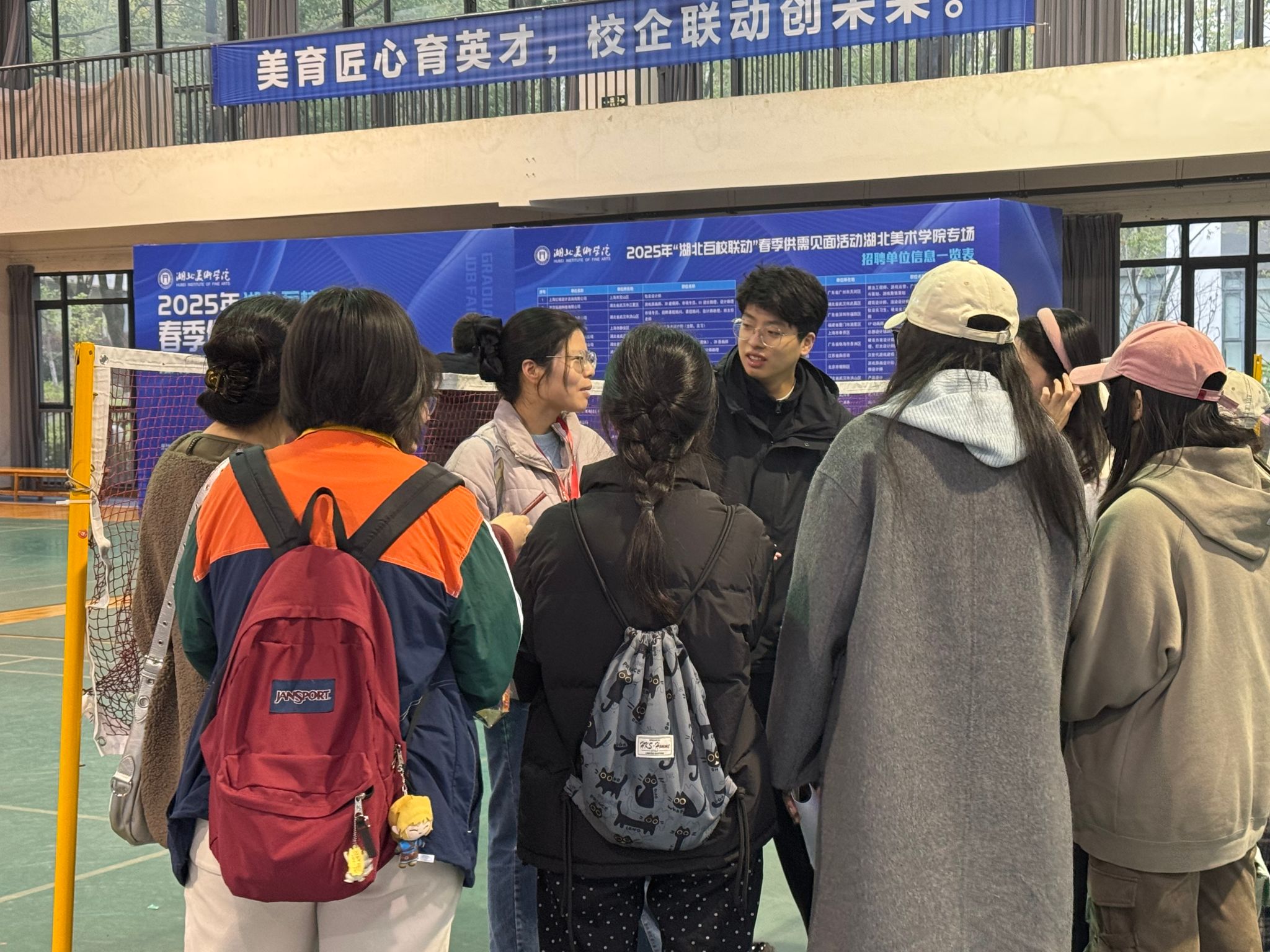 3 月 13日下午,湖北美术学院藏龙岛校区体育馆内人头攒动,2025届毕业生春季双选招聘会在此火热开启。本次活动作为“湖北百校联动”重要专场,吸引了包括宝宝巴士、米哈游、厦门萌力星球、武汉育才美术高级中学等47家省内外知名企业参与,共提供167类岗位、2631余个用人需求,现场吸引千余名毕业生携简历踊跃求职。