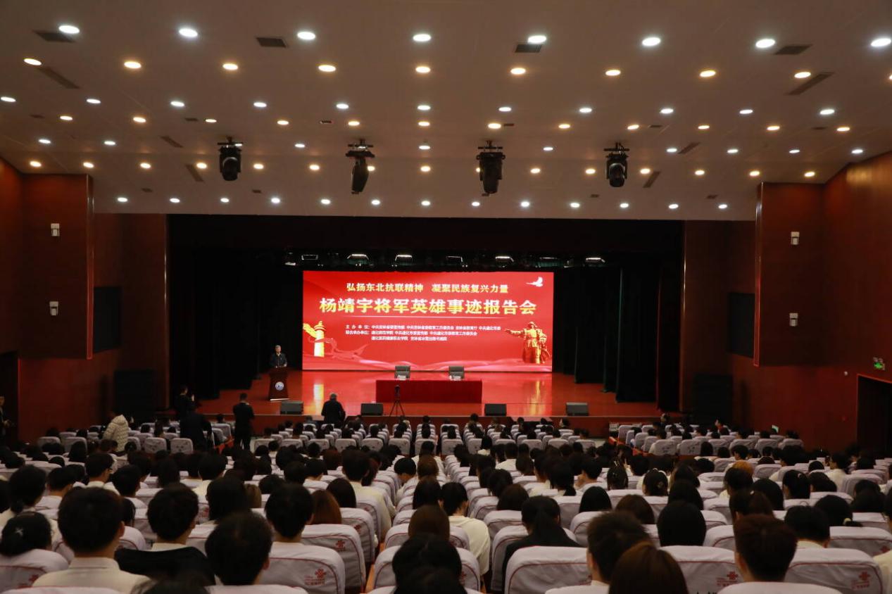 报告会上,马继志将杨靖宇将军在艰苦卓绝的抗战岁月中,为了民族解放事业,不畏强敌、浴血奋战的英雄事迹一一展现在大家眼前。他的深情讲述让东北抗联精神化作活生生的人物和事例走进每一位学子心中,激励他们传承红色基因,赓续红色血脉,在新时代新征程上,勇担使命、砥砺前行,立报国强国大志向、做挺膺担当奋斗者。赵明仁详细讲述了实地寻访英雄足迹,历时一年多创作完成组画《人民英雄杨靖宇百米长卷》的心路历程和深刻感悟。