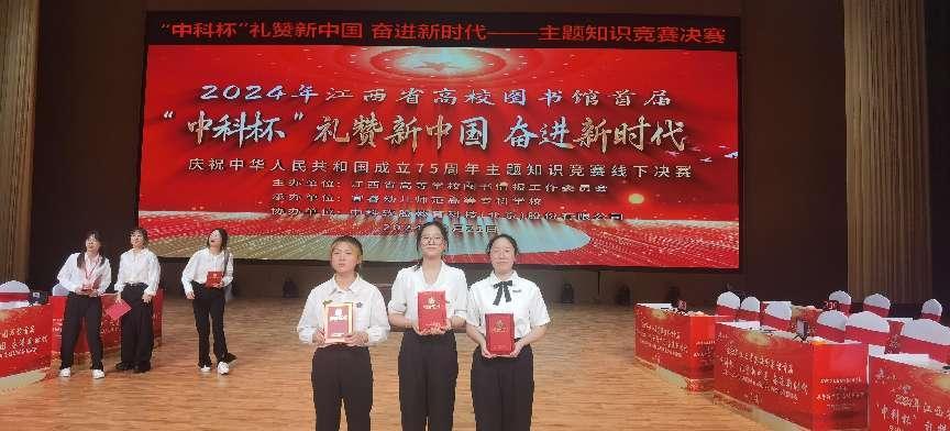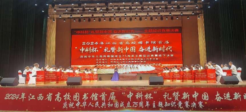 9月21日下午,首届江西省高校图书馆·中科杯“礼赞新中国,奋进新时代”庆祝中华人民共和国成立75周年主题知识竞赛线下决赛在宜春幼专师范文化教育中心举行。本科组、高职高专组共有30支队伍同台竞技。决赛以现场竞答的方式进行,题型分为必答题、抢答题、风险题,内容涵盖习近平总书记系列重要讲话精神、“四史”学习教育、时事政治等方面。