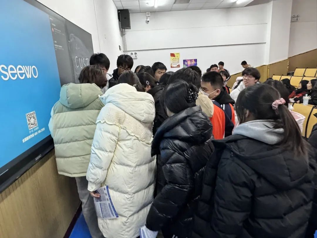 我们抵达母校后先对阶梯教室进行布置,随后引导学弟学妹就坐,开展宣讲以及答疑。