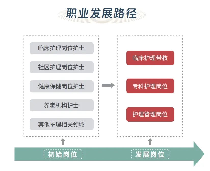护理专业毕业生,可沿如下初始岗位晋升到相应的发展岗位: