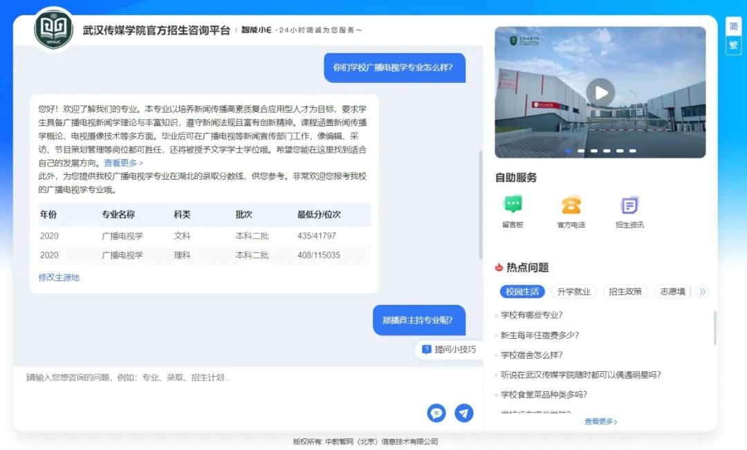 武汉传媒学院智能招生问答系统