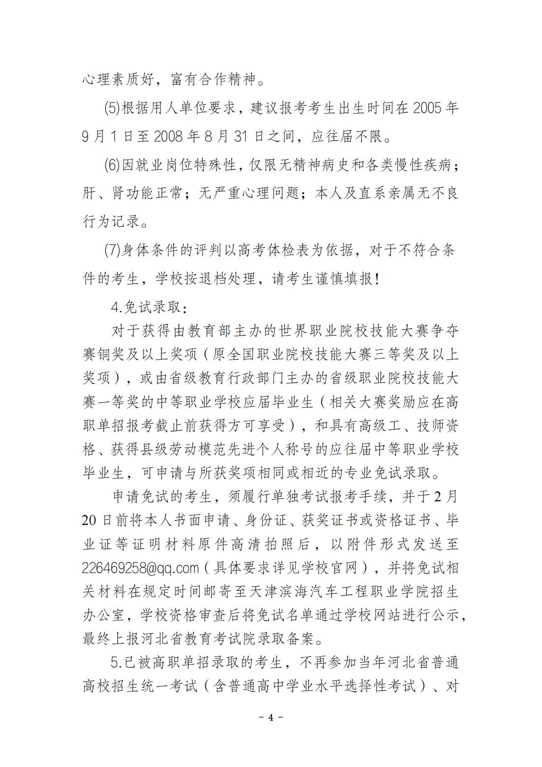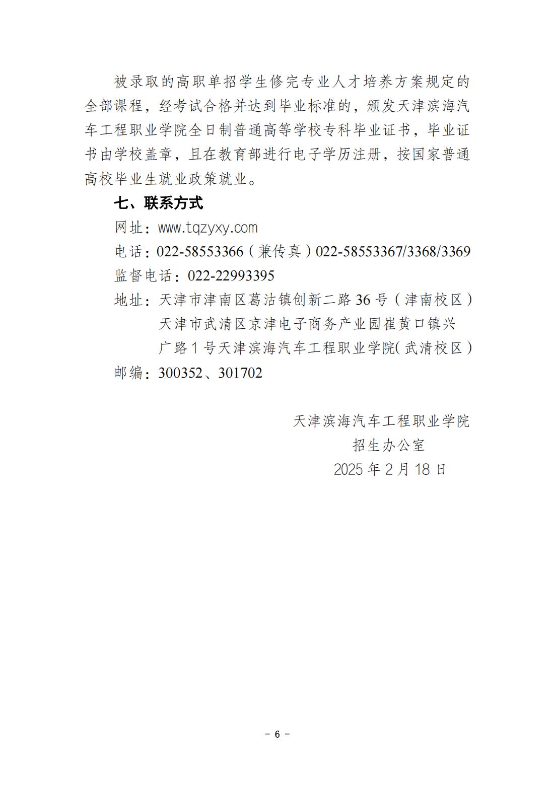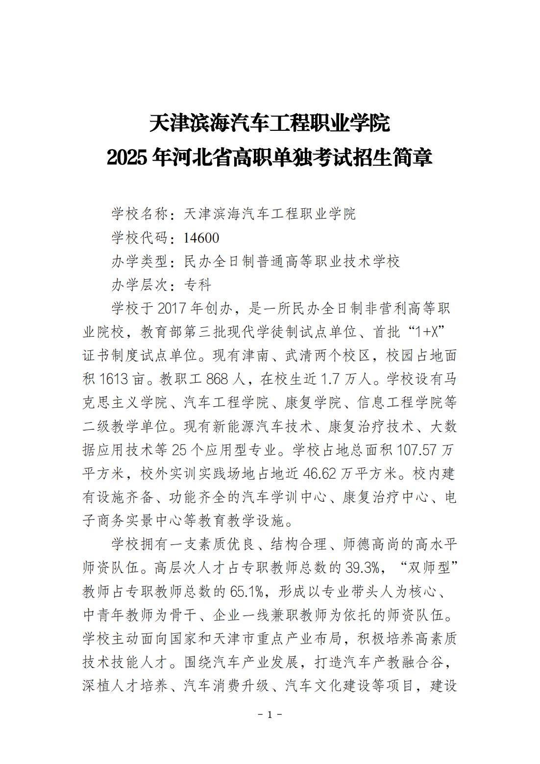 天津滨海汽车工程职业学院 2025 年河北省高职单独考试招生简章