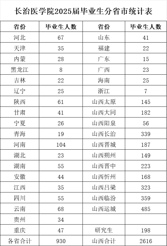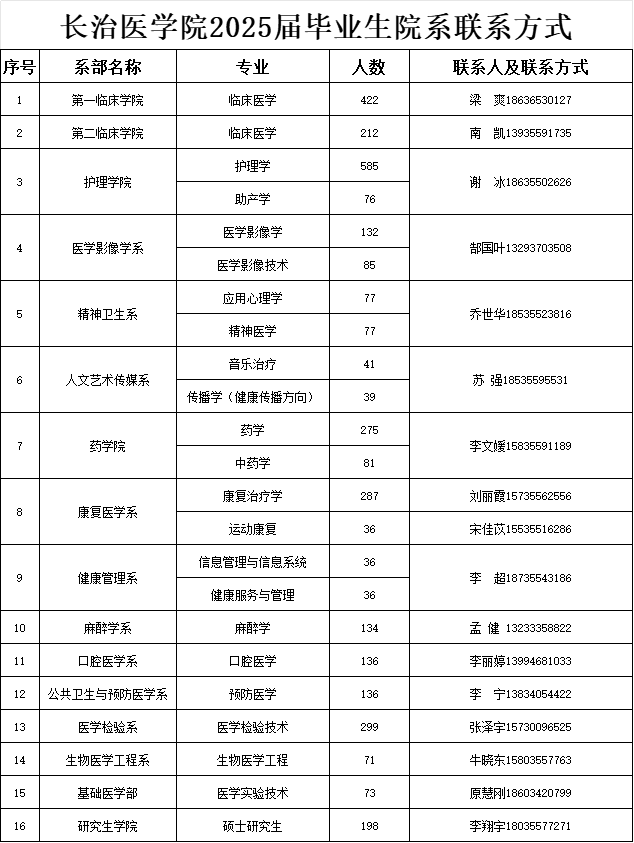 山西省2025年事业单位公开招聘考试笔试将于3月29日举行,考研复试亦于3月中下旬陆续开展,为最大限度保障用人单位招聘成效,同时为参加公考笔试、备战考研复试的毕业生预留考后调整期,使其在明确升学或公考结果后能更专注地规划职业方向,本次双选会时间选定2025年4月12日(星期六)在长治医学院校本部举办(各专业毕业生情况见附表)。