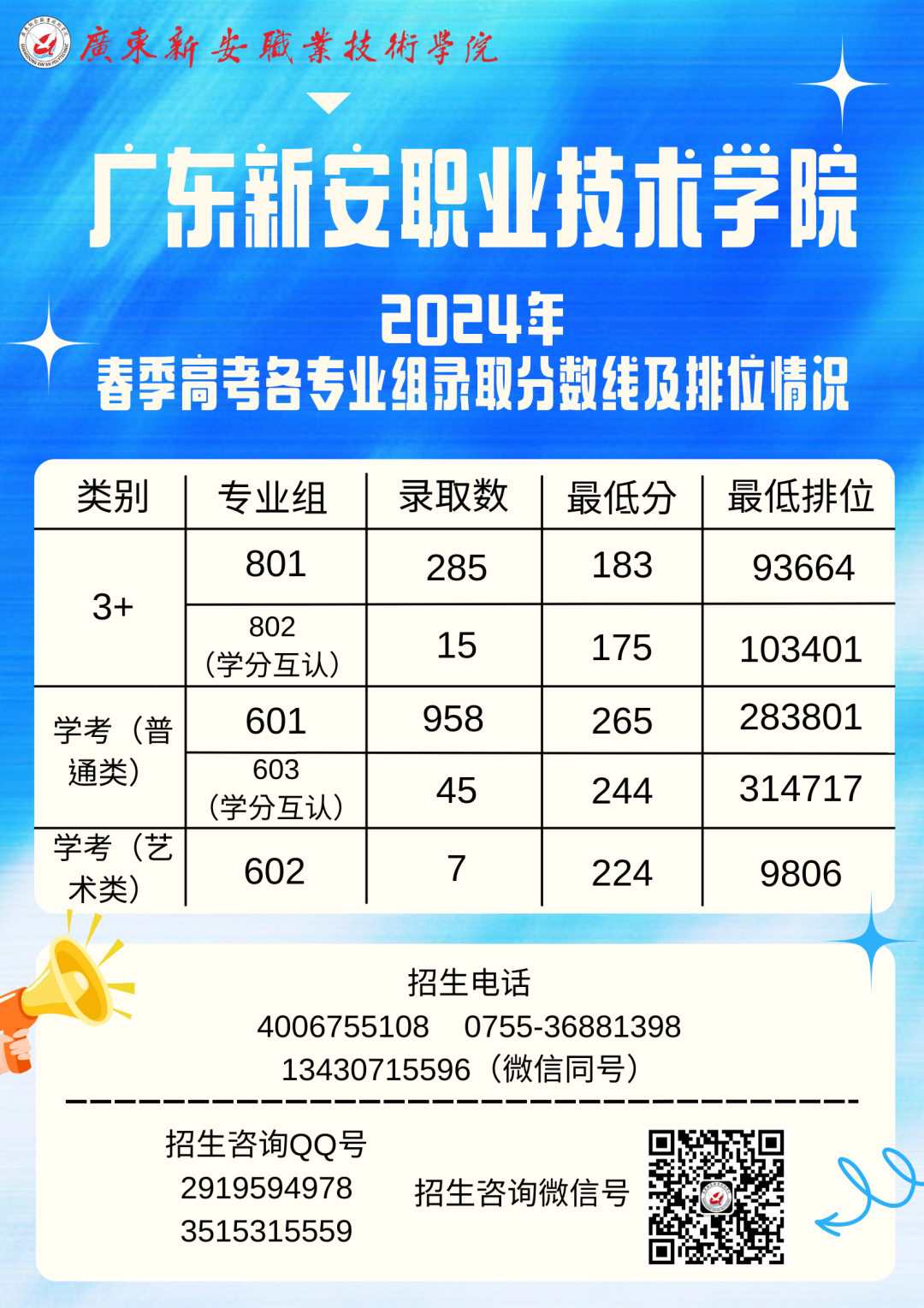 新安学院招生丨2024年春季高考各专业组投档分数线~~~