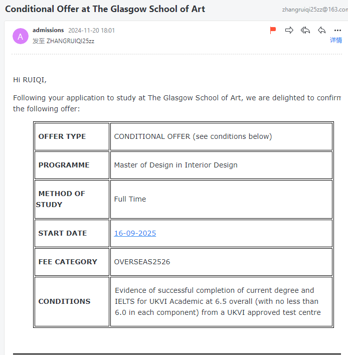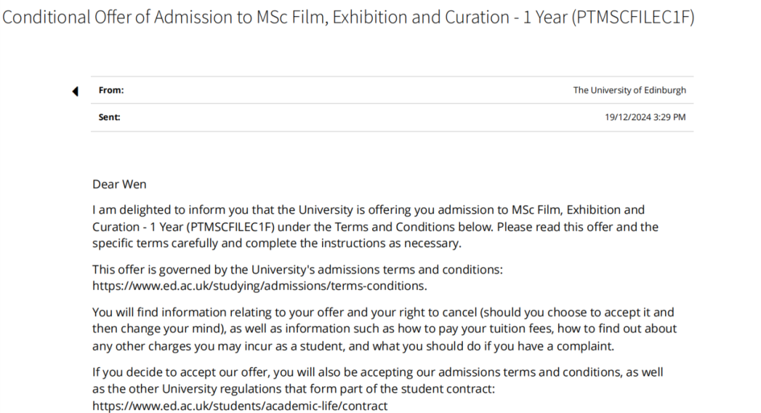 特别祝贺2025届艺术设计学院学子 赵文同学,斩获悉尼大学(QS:18)、爱丁堡大学(QS:27)OFFER。