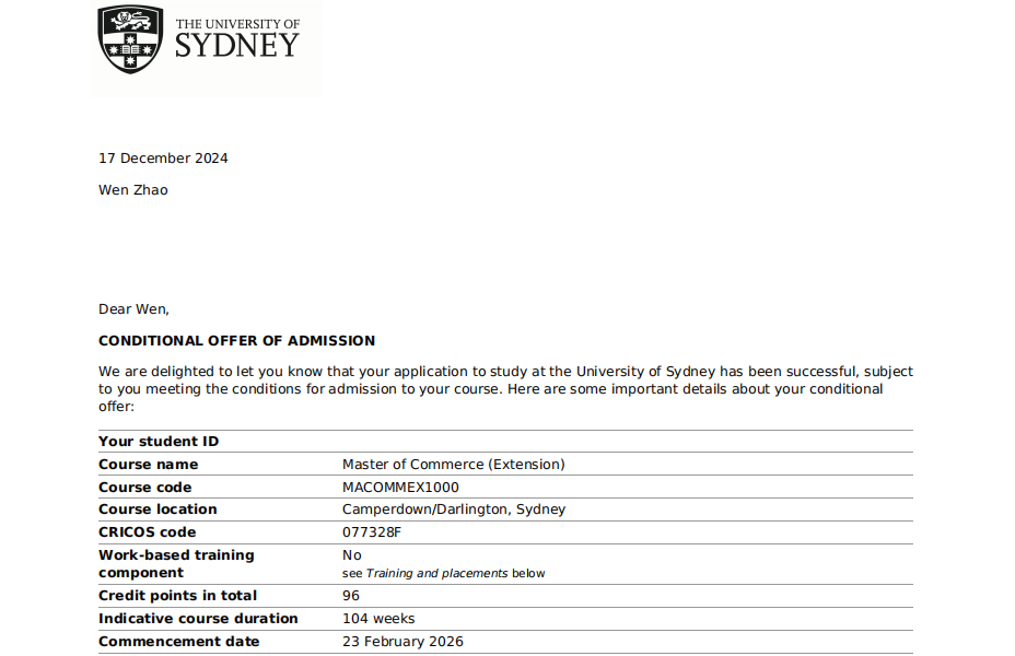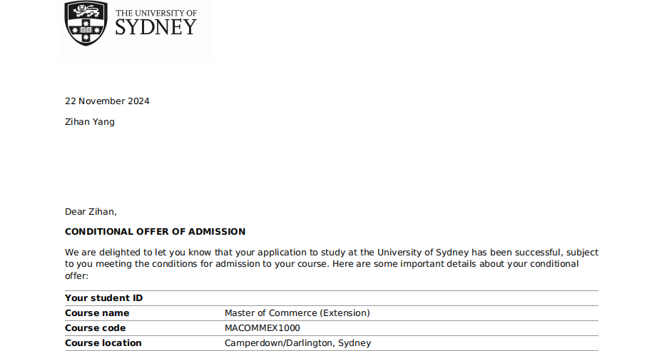 特别祝贺2025届艺术设计学院学子 杨紫涵同学,斩获悉尼大学(QS:18)OFFER。