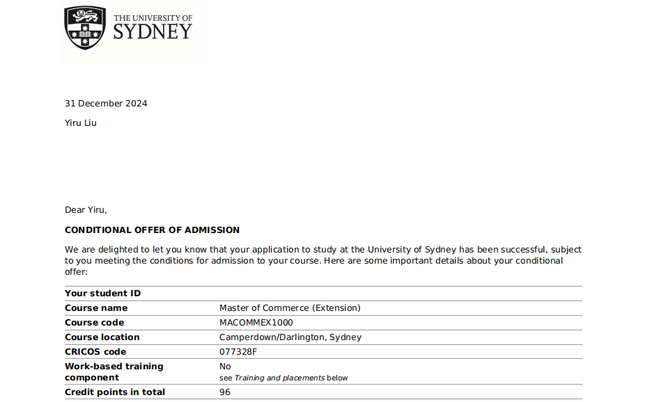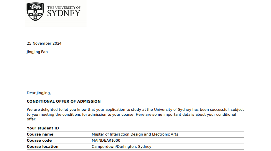 特别祝贺2025届艺术设计学院学子 刘绎如同学,斩获悉尼大学(QS:18)OFFER。