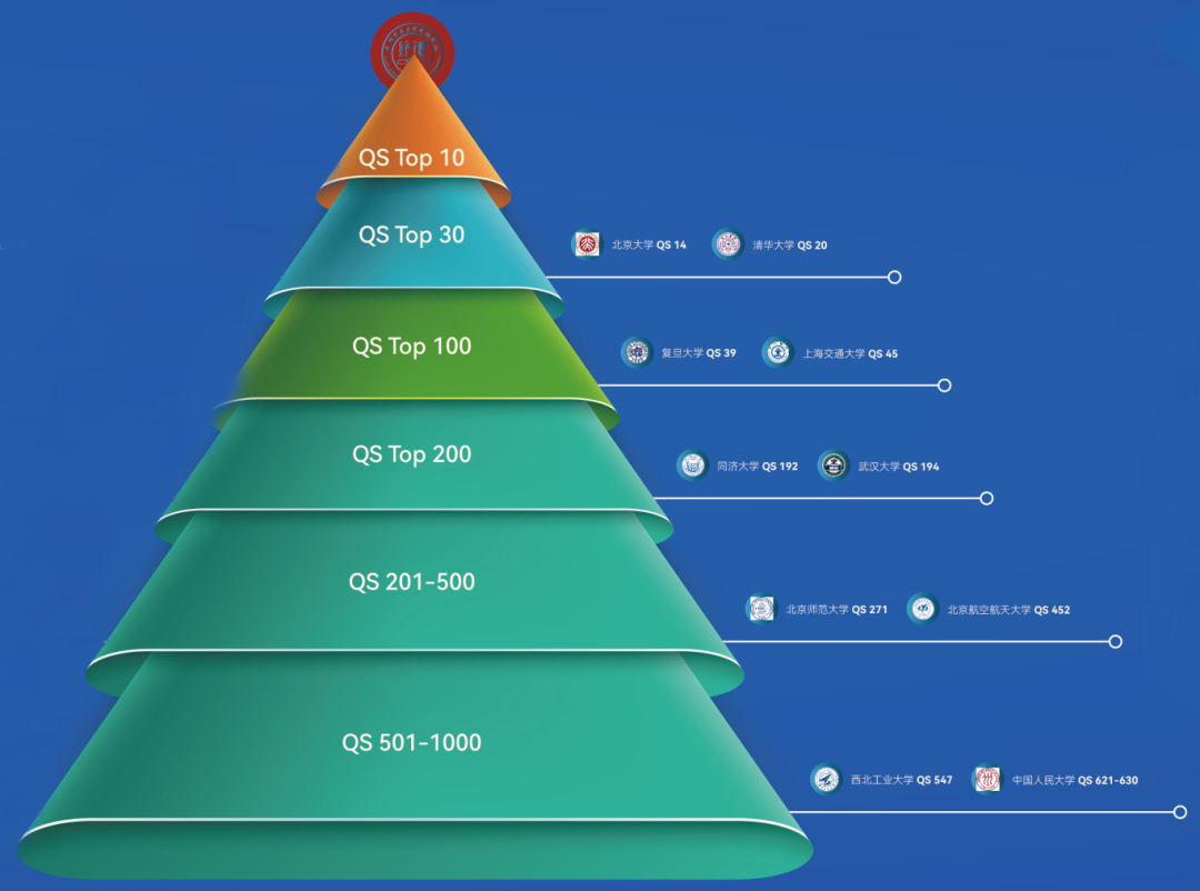 | QS世界排名前50(复旦大学QS39、上海交通大学QS45) | 21 |