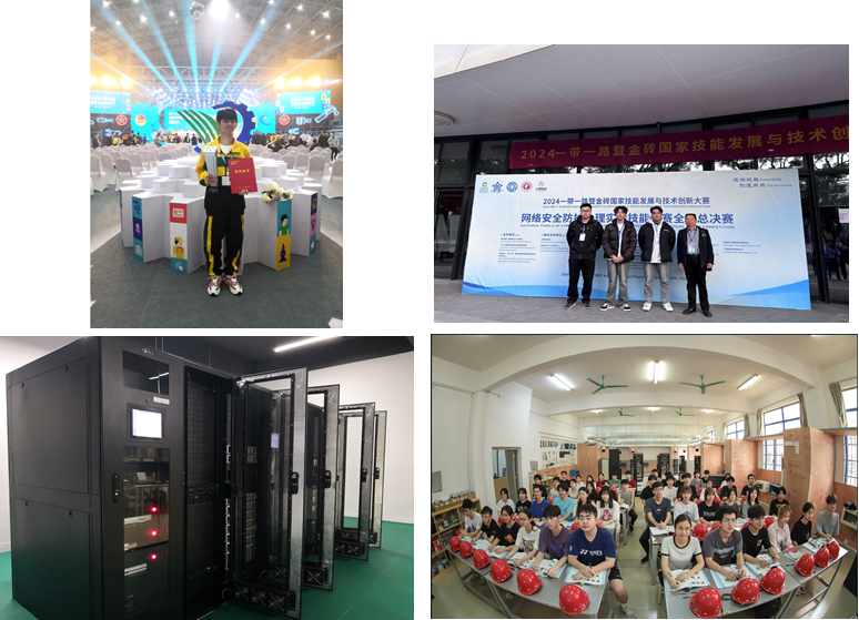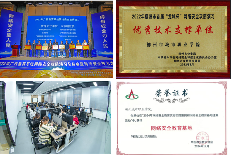 与天融信、奇安信、塔易、华三、华为等行业领军企业共建信息安全实训室、网络技术实训室等全区一流实训基地,是全国首批信息技术应用创新人才培养与评价基地、全国网络安全教育基地、广西网络安全人才培养基地。指导学生及企业职工参加职业技术技能比赛,获得自治区级以上奖项数十项。在护网行动中,表现优异,多次获得“优秀攻击队”“优秀防守单位”等荣誉称号。坚持以就业为导向的办学理念,采用项目教学模式,学习过程注重实践,让学生在做中学,在学中做,学生在校期间可考取NISP、H3CNE、H3CSE、HCNA、HCNP、HCIE、 RHCE等国际级IT认证。