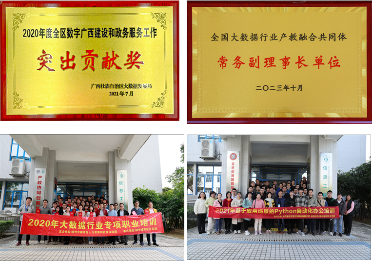 大数据技术专业以“双师引领、产教融合、赛教互促”为特色,依托高水平师资团队与深度校企合作构建人才培养体系。专业现有教师团队8人,其中“双师型”教师占比达90%,高级职称教师占比56%(含教授、副教授及高级工程师),中级职称占比27.78%,团队成员兼具高级工程师、华为认证大数据工程师、大数据分析师等企业技术资质,确保教学与行业需求无缝对接。校企合作方面,与上汽通用五菱汽车股份有限公司等头部企业共建实践平台,推进技术研发与成果转化。学生培养成效显著,2024年斩获广西职业技能大赛Python程序开发赛项一等奖、全国CAIP信息技术创新赛道大数据赛项总决赛二等奖;2023年获中国高校计算机大赛-团体程序设计天梯赛区级一等奖、广西人工智能设计大赛区级二等奖等多项国家级/省级奖项,凸显“技术+实战+创新”三位一体的育人特色。