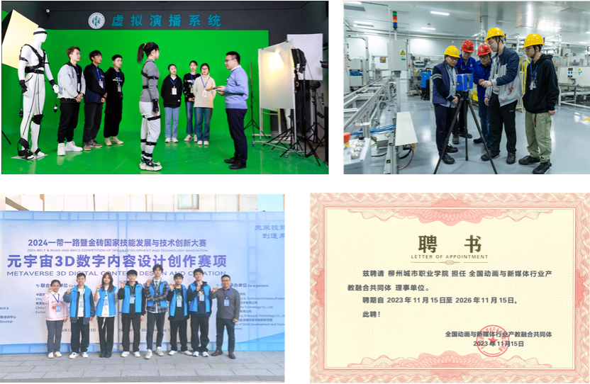 学院“无人机+”城乡建筑数字化虚拟仿真实训基地为自治区级职业教育示范性虚拟仿真实训基地,全国大数据行业产教融合共同体常务副理事长单位,国家工业软件行业、全国信息通信技术行业、全国制造业数字化转型发展行业、数字孪生行业产教融合共同体副理事长单位。