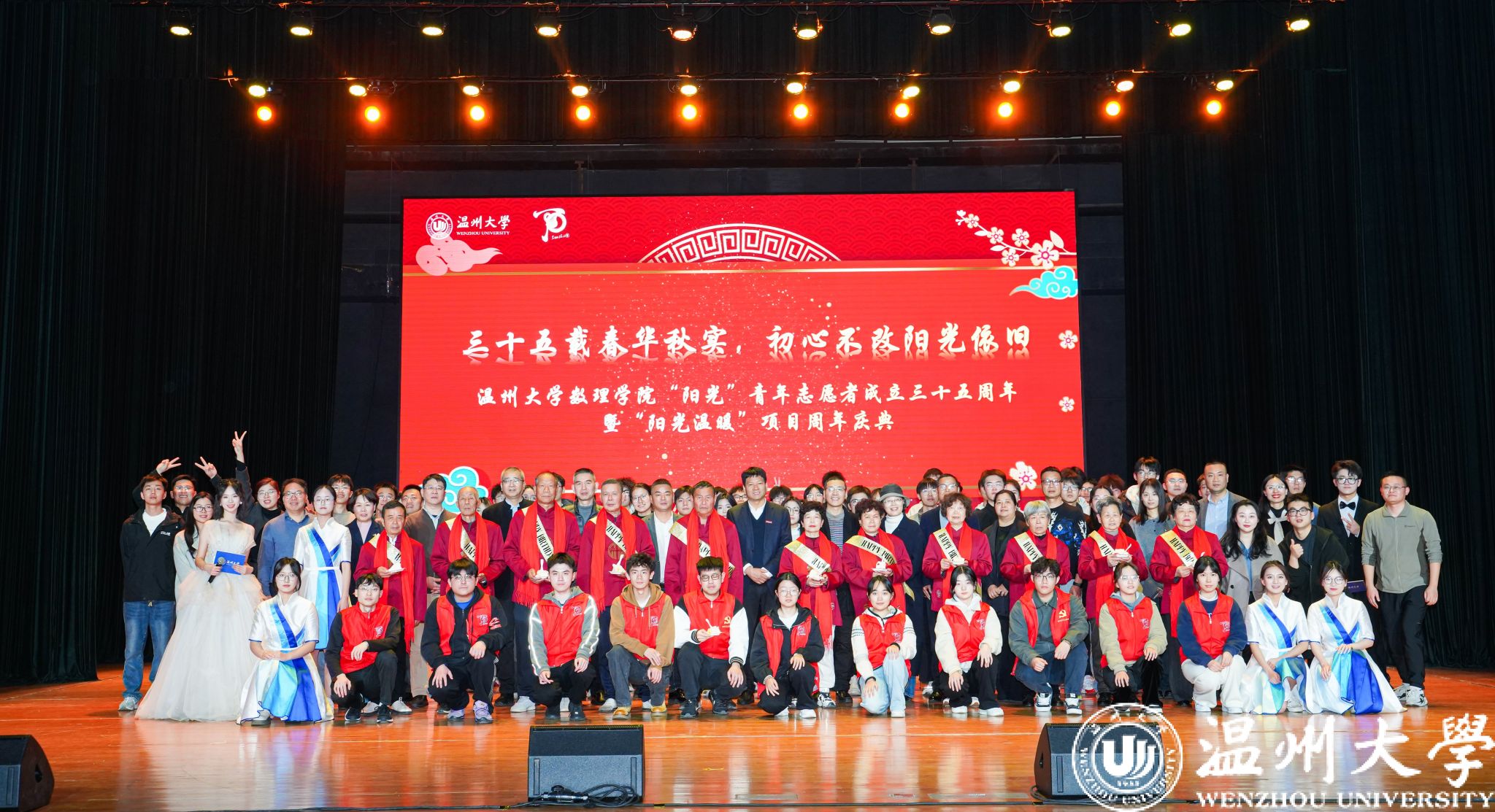 3月12日下午,温州大学数理学院“阳光”青年志愿者成立三十五周年暨“阳光温暖”项目一周年庆祝大会在育英大礼堂举行。本次活动特邀校党委副书记庄兴忠,茶山街道山根社区党总支书记姜进、老人代表,阳光青年志愿者项目创始班级90数本校友代表,数理学院领导及师生代表一同参加了本次活动。共同回顾“阳光”志愿者的成长历程,展望新时代志愿服务的使命担当。