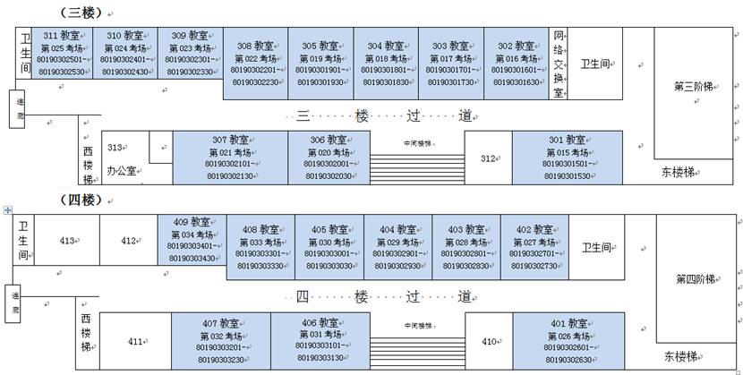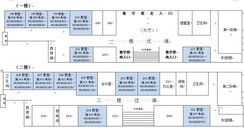 2019年单独测试招生028-039、五年一贯制转段考试040考场分布图