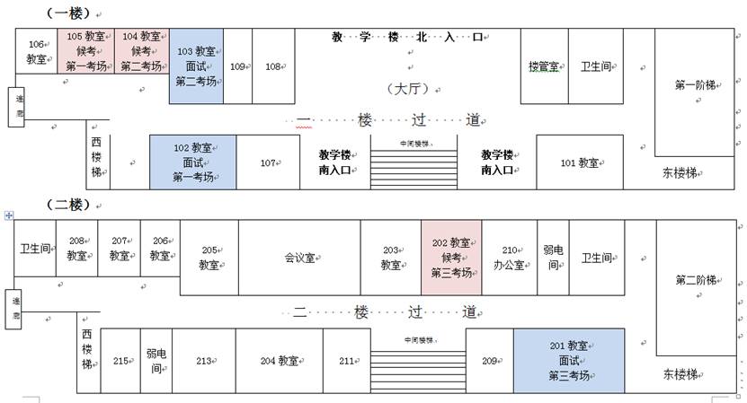 2019年单独测试现代学徒制面试第一至第三考场分布图