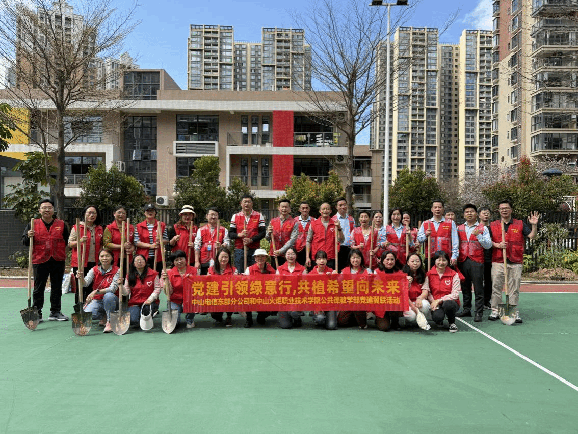 3月12日,第47个中国植树节当天,我校公共课教学部直属党支部与中山电信东部分公司党支部党员代表齐聚一堂,共同开展党建翼联植树活动。在春日暖阳下,党员们挥锹铲土、扶苗填坑用实际行动践行责任与担当,在实践中体会“绿水青山就是金山银山”理念,为美丽中山增添一抹生机盎然的新绿。每一棵新栽下的树苗,既象征着对生态文明建设的坚定承诺,也寓意着共建单位携手前行、共创美好未来的深厚友谊。