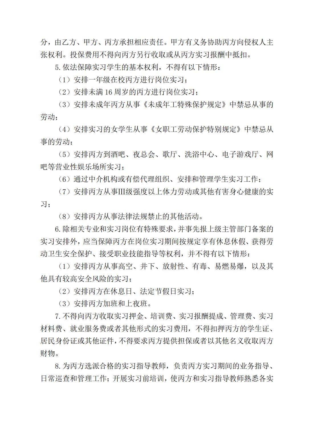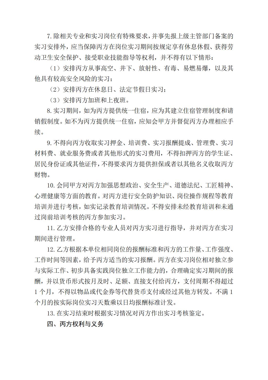 第十七条 学生到实习单位实习前,学院、实习单位、学生应签订岗位实习三方协议,明确各自责任、权利和义务。未按规定签订实习协议的,不得安排学生实习。